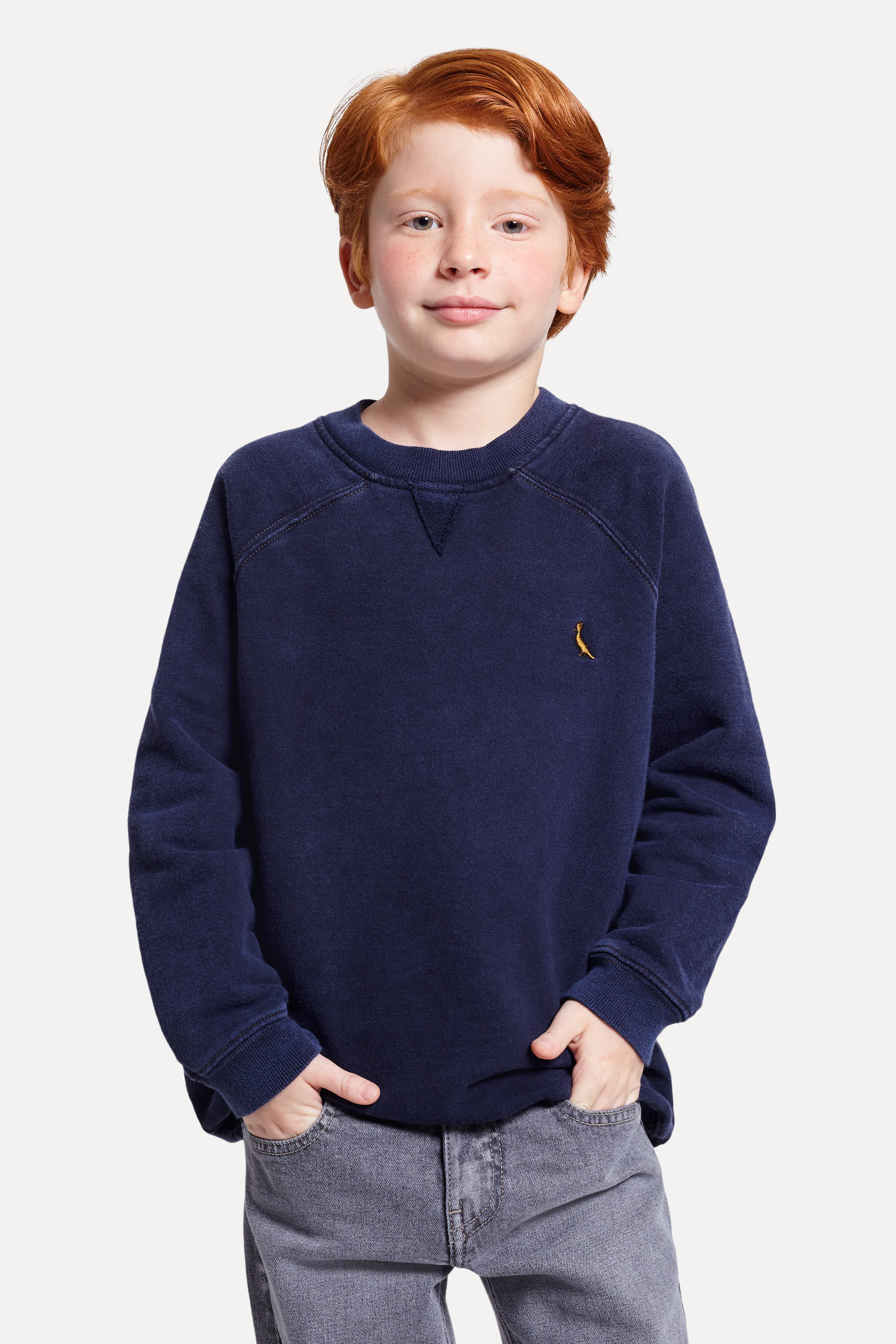 Moletom manga longa modelagem oversized e manga raglan e lavagem estonada. Detalhe em "V" no decote frente e bordado em linha ocre. Produzido eticamente no Brasil. Comprando esta peça, você complementa cinco pratos de comida através do nosso programa 1P=5P.