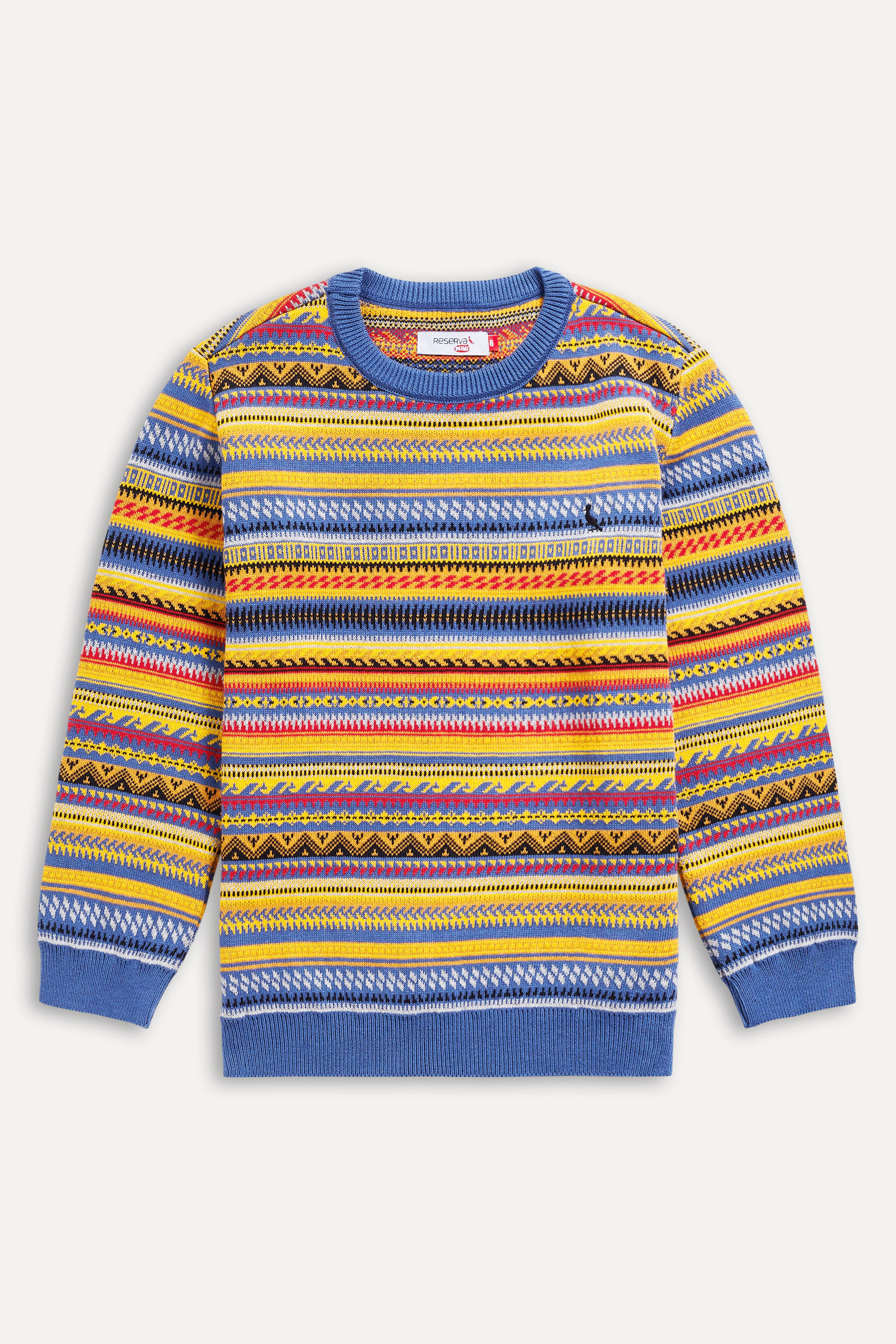 Casaco Mini de tricot camp. Com estampa super colorida e com bordado no peito do pica pau é um casaco divertido e que deixa seu mini super estiloso. Comprando esta peça, você complementa cinco pratos de comida através do nosso programa 1P=5P.