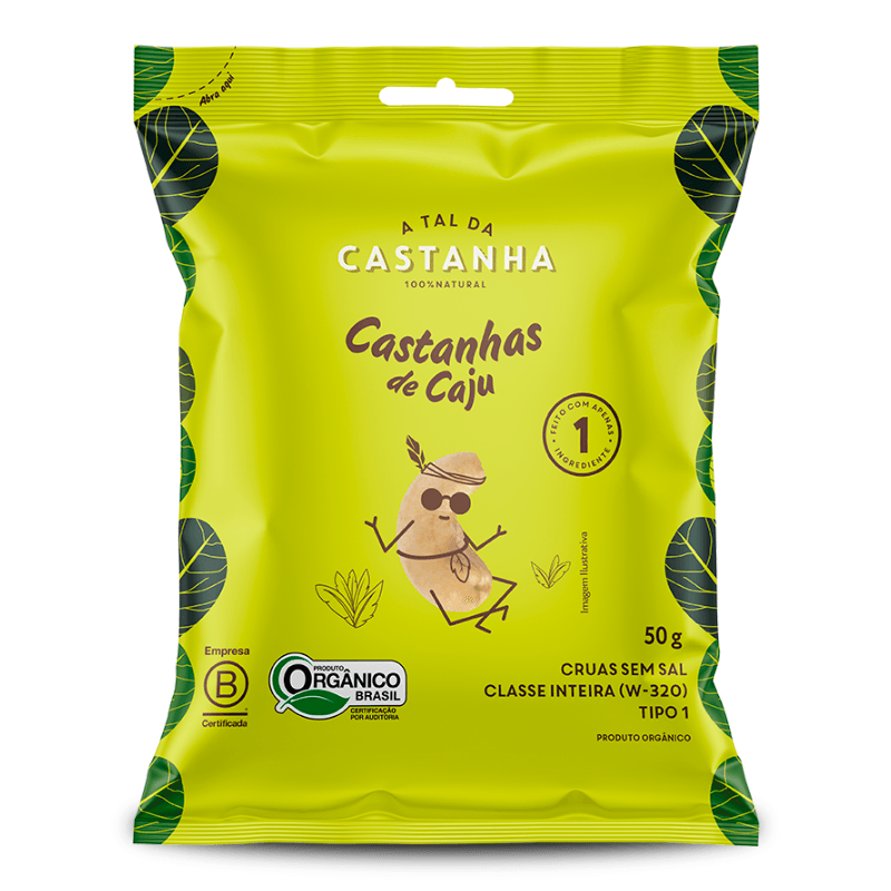 Informações técnicas do produto<br>_x000D_ As Castanhas Orgânicas Cruas, da A tal da Castanha é um produto orgânico certificado, sua embalagem é prática e pode ser levada na mochila. O produto orgânico é um alimento cultivado sem agrotóxicos, com agricultura fundamentada em processos naturais, preservando pela conservação do solo e além de fornecer nutrientes como os demais, mas sem os inseticidas, pesticidas, etc.<br>_x000D_ <br>_x000D_ Sobre a marca:<br>_x000D_ A tal da castanha, é uma empresa familiar que está no mercado nacional há 20 anos, baseados na simplicidade, entrega nutritiva e qualidade. Possui ações de sustentabilidade, como preservação e utilização inteligente da água. Sempre preocupados com a informação clara e responsável na rotulagem dos produtos. Utilizam apenas produtos naturais e constantemente são realizados testes de glúten, lactose e soja para confirmar que os produtos não contenham traços.<br>_x000D_ <br>_x000D_ Informações sobre alergênicos:<br>_x000D_ Contém amêndoas de castanha de caju.<br>_x000D_ <br>_x000D_ Recomendações de consumo<br>_x000D_ Sugere-se o consumo de 5 unidades de castanha de caju ou 1 colher de sopa por dia.<br>_x000D_ <br>_x000D_ Dica:<br>_x000D_ Perfeito para complementar os lanches saudáveis ou colocar na salada. Pode incrementar sua receita, como bolo de banana com castanha de caju, leite de castanha de caju, requeijão vegano de castanha de caju.<br>_x000D_ <br>_x000D_ Porque comprar este produto?<br>_x000D_ Vegano<br>_x000D_ Sem glúten<br>_x000D_ Sem lactose<br>_x000D_ Sem conservantes<br>_x000D_ Orgânico<br>_x000D_ 100% natural<br>_x000D_ Zero gorduras trans