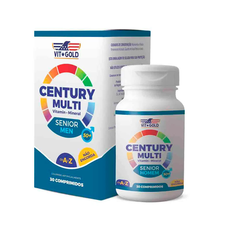 <p>Informa‡äes t‚cnicas do produto:<br>O Century Senior Homem, da VitGold, ‚ um suplemento multivitam¡nico e mineral produzido especialmente para os homens de idade mais avan‡ada. Sua f¢rmula balanceada e completa oferece maior quantidade de vitaminas e minerais e ‚ excelente para suprir as necessidades nutricionais do dia a dia e, consequente, para manter o bom funcionamento do organismo.<br><br>Recomenda‡äes de consumo:<br>Recomenda-se tomar 1 comprimido de Century Senior Homem ao dia, durante a refei‡Æo principal.<br><br>Consulte um nutricionista ou m‚dico para adequar …s suas necessidades espec¡ficas.<br><br>Por que escolher este produto:<br>Pr tico<br>Seguro<br>NÆo cont‚m gl£ten<br>NÆo cont‚m a‡£car<br>Livre de aromatizantes<br>Livre de conservantes<br>Sobre a marca:<br>A VitGold ‚ uma empresa de suplementos vitam¡nicos e minerais dos Estados Unidos, com atividades no Brasil desde 1994. Seus produtos sÆo produzidos em laborat¢rios credenciados e validados por ¢rgÆos como a FDA nos Estados Unidos e a ANVISA no Brasil, garantindo a qualidade dos suplementos.</p>