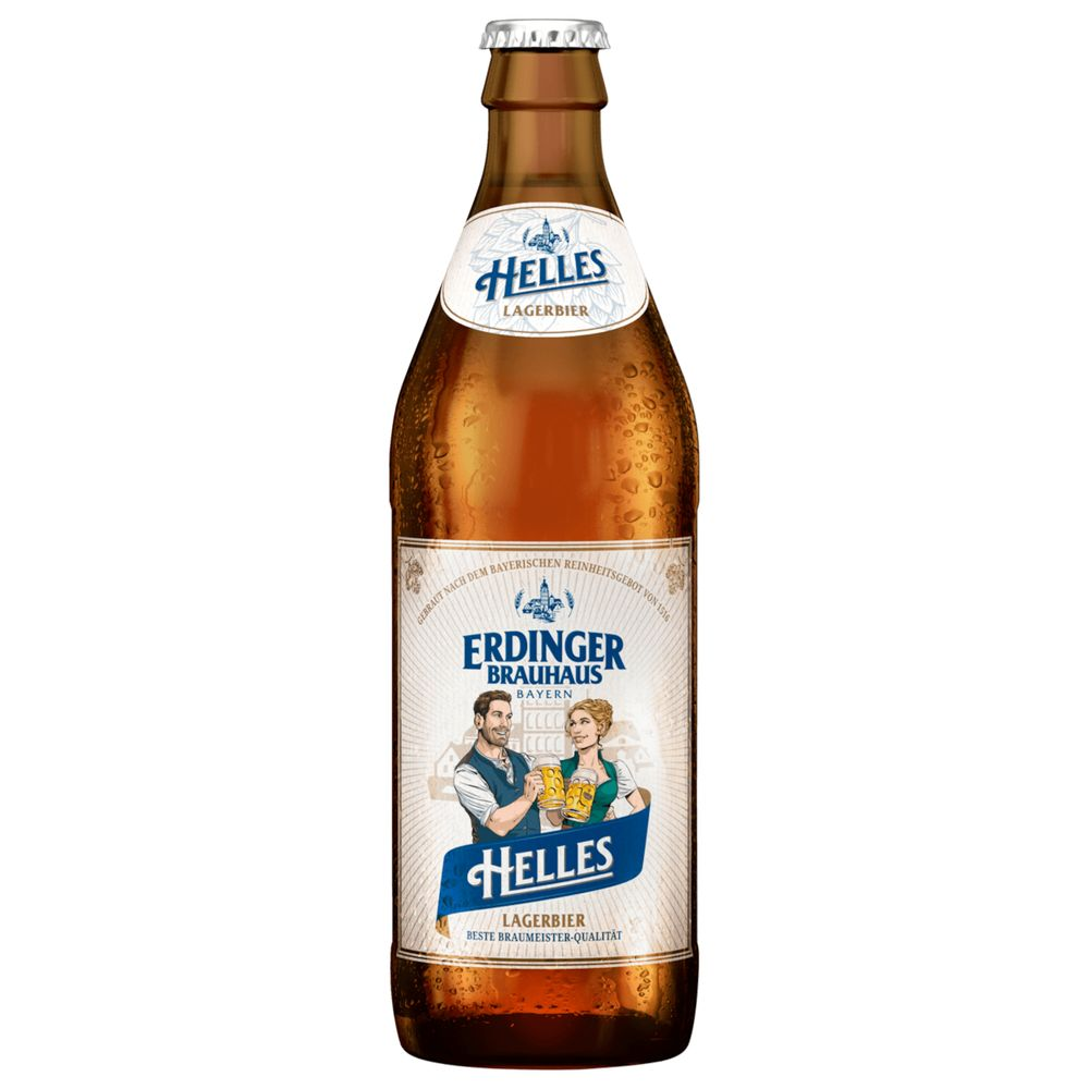 A Cerveja Erdinger Brauhaus Helles 500ml personifica a excelência da cervejaria alemã, oferecendo uma experiência autêntica e revigorante. Elaborada seguindo rigorosos padrões de qualidade, esta lager Helles utiliza apenas ingredientes naturais: água pura, malte selecionado, levedura especial e lúpulo aromático. Seu sabor equilibrado, levemente adocicado e com um toque sutil de amargor, culmina em um final deliciosamente refrescante. Perfeita para acompanhar momentos de descontração ou harmonizar com pratos leves e saborosos, a Cerveja Erdinger Brauhaus Helles é acondicionada em uma prática garrafa de 500ml, preservando seu frescor e qualidade superior a cada gole. Desfrute da tradição e do sabor inigualável desta cerveja alemã clássica.<br /> <br /> <br /> Diferenciais e Benefícios Principais<br /> <br /> Sabor puro e incrivelmente refrescante.<br /> Elaborada com ingredientes naturais selecionados.<br /> Embalagem prática de 500ml em garrafa de vidro.<br /> Autêntica tradição cervejeira alemã.<br /> Ideal para harmonização com diversos pratos.<br /> <br /> Detalhes Adicionais<br /> <br /> A Cerveja Erdinger Brauhaus Helles se destaca por sua composição natural, que inclui água, malte, levedura e lúpulo, garantindo uma pureza e sabor inigualáveis. Esta cerveja lager alemã de 500ml convida você a apreciar uma bebida leve e saborosa, perfeita para diversas ocasiões, desde um happy hour com amigos até um jantar especial. A embalagem em garrafa de vidro assegura a integridade do produto, mantendo suas características originais e frescor até o momento do consumo, proporcionando uma experiência completa e satisfatória.<br /> <br /> <br /> Dicas de Uso e Conservação<br /> <br /> Para uma experiência ideal, sirva a Cerveja Erdinger Brauhaus Helles bem gelada.<br /> Armazene a garrafa em local fresco, seco e ao abrigo da luz solar direta.