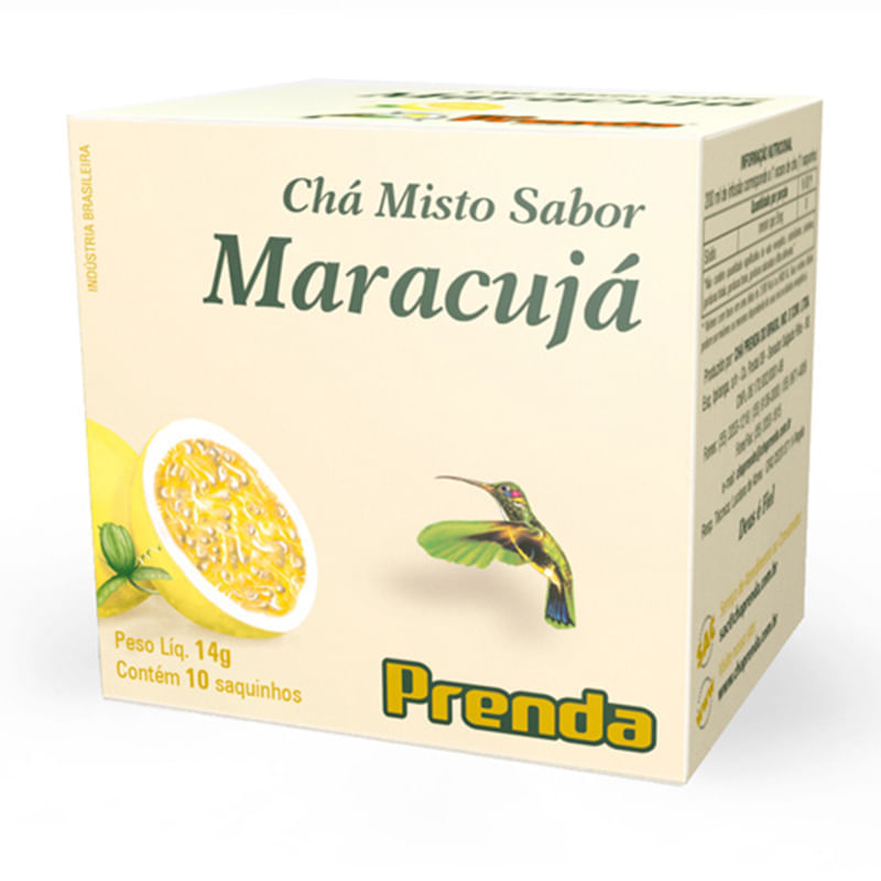 <p>Com o <strong>Chá Maracujá Chá Prenda 14g com 10 Sachês </strong>descubra que mesmo a natureza poderia criar elementos puros e saudáveis que a <strong>Chá Prenda</strong> lhe oferece em um chá leve e delicioso para ser bebido quente ou gelado, pois Chá Prenda é gostoso sempre!</p>_x000D_ Sugestão de consumo:_x000D_ <p>Coloque o saquinho em uma xícara e adicione água quente, não fervida. Deixe em infusão entre 3 a 5 minutos ou até obter cor e sabor desejados.</p>_x000D_ Sobre os ingredientes:_x000D_ <p>Frutos e folhas de maracujá (Passiflora edulis F. Flavicarpa Degener),folhas de erva-mate (Ilex paraguariensis St. Hil.), folhas de capim-cidreira (Cymbopogon citratus Stapf) e aroma idêntico ao natural de maracujá. Não contém Glúten.</p>_x000D_ Sobre a marca:_x000D_ <p>A <strong>Casa Valentina</strong><strong> </strong>acredita que é possível ser saudável sem perder o sabor. É assim que conquistamos a preferência de tanta gente: com produtos leves, práticos e que agradam o paladar.</p>