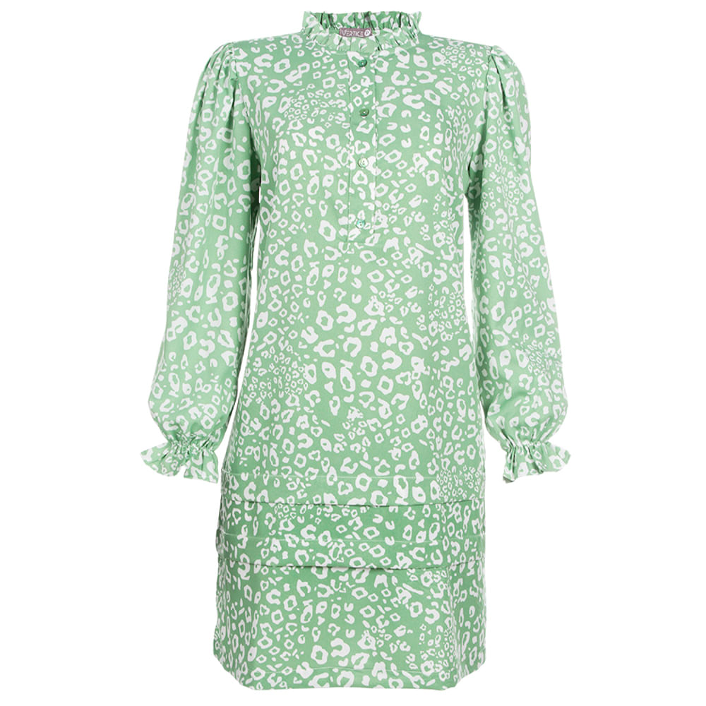 Chemise feminina confeccionada em crepe Twill Luanda estampado; Modelo possui mangas longas com aplicação de lastex no punho, gola alta com detalhe de franzidos e fechamento frontal por botões; Aplicação de babado na barra da saia e comprimento curto; Estampa corrida em animal print inspirada na padronagem das onças; A chemise é uma peça prática e super leve para os seus looks do dia a dia; Combine com calçados delicados com sandálias de salto e tiras finas, sapatilhas e até mesmo tênis slip on; Você pode completar o look acrescentando um cinto para marcar a cintura e uma bolsa de mão para arrematar com estilo;As chemises femininas são peças tradicionais e que se adaptam em diversos estilos; Invista na peça de animal print para trazer ainda mais informação de moda para o seu visual;<br><br>.<br><br>Produto : Chemise Curta Manga Longa Verde<br>Código : CHE2203VRD<br>Categoria: Chemise<br>Cor: Verde<br>Manga: Manga Longa<br>Gola: Redonda<br>Tecido: Crepe Twill Luanda Estampado<br>Composição : 89 % Poliester / 11% Elastano<br>Peso: 300 g<br>Gênero: Feminino.<br><br><br>Marca: Vértice<br><br>.<br><br><br>Medidas.<br><br>P - Busto até 90 cm l Cintura até 71 cm l Quadril até 99 Cm.<br><br>M - Busto até 96 cm l Cintura até 77 cm l Quadril até 102 cm.<br><br>G - Busto até 102 cm l Cintura 83 cm l Quadril 111 cm.<br><br>GG - Busto 108 cm l Cintura até 89 cm l Quadril até 117 cm.<br><br>EGG - Busto até 114 cm l Cintura até 95 cm l Quadril até 123 cm.