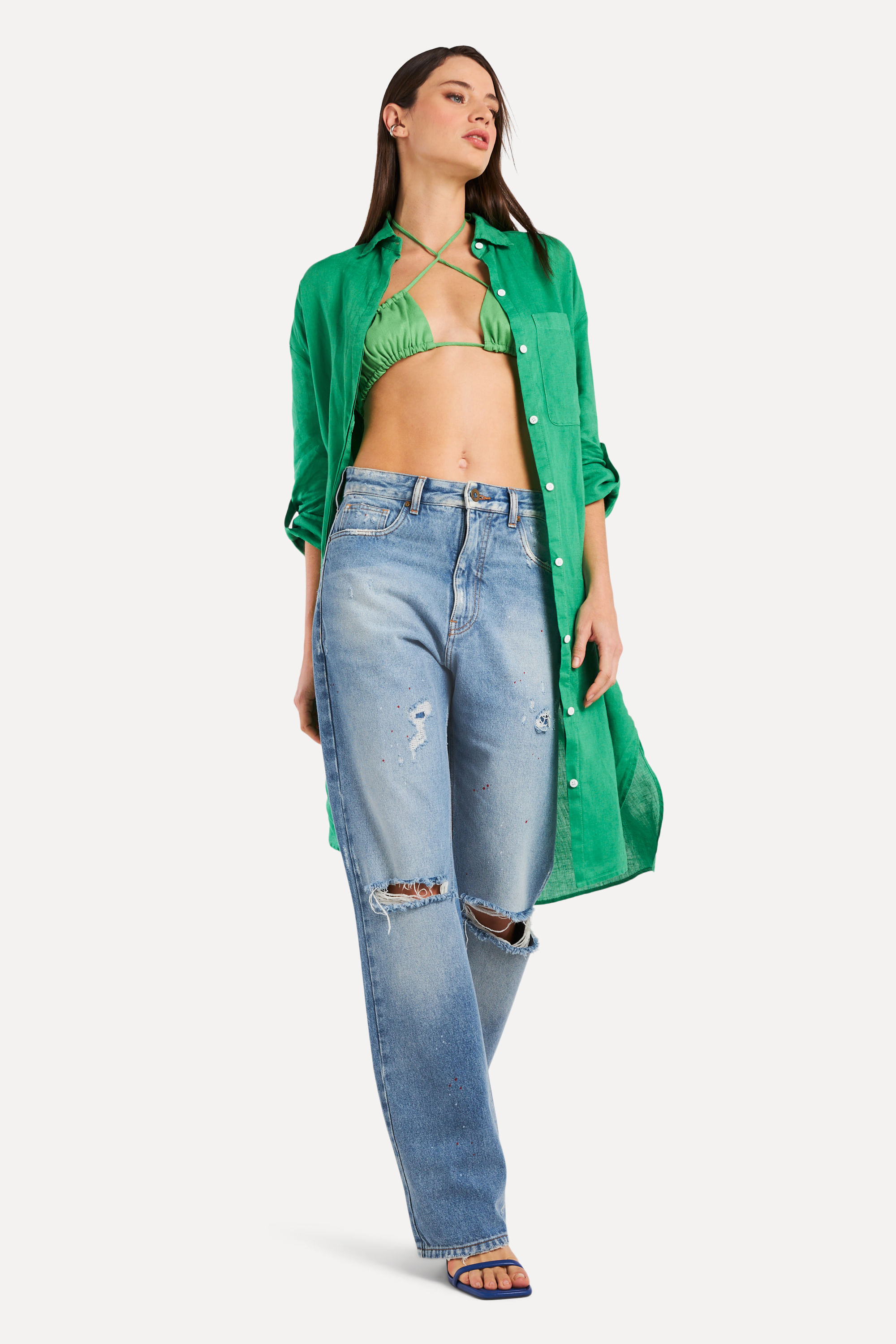 Indipensável no seu closet! A chemise <b>linho</b> tem modelagem solta, <b>manga longa</b> e tecido super macio e resistente. Pode ser usada como um vestido longo ou sobreposições para um look mais urbano.