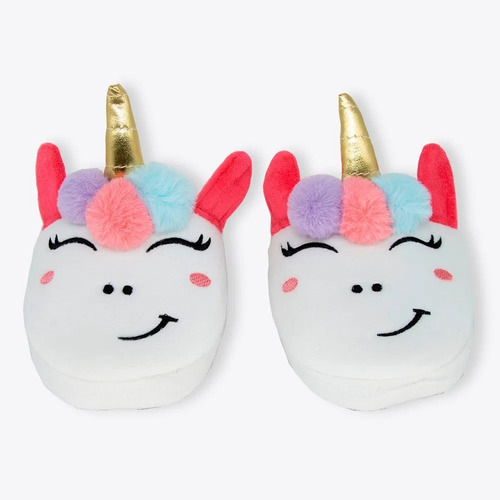 Descrição<br /> <br /> Chinelo Unicórnio ideal para quem é apaixonado pela magia dos Unicórnios! Feito em poliéster perfeito para deixar seus pés confortáveis e quentinhos!<br /> <br /> Especificações: Altura 31cm |Comprimento 45cm| Largura 32cm| Peso: 217gr<br /> <br /> Cuidados: Lavar somente com sabão neutro. Não utilizar alvejantes ou outros produtos abrasivos<br /> <br /> Tamanhos:<br /> P- 33/34/35<br /> M-36/37/38<br /> G-39/40/41<br /> GG-41/42/43