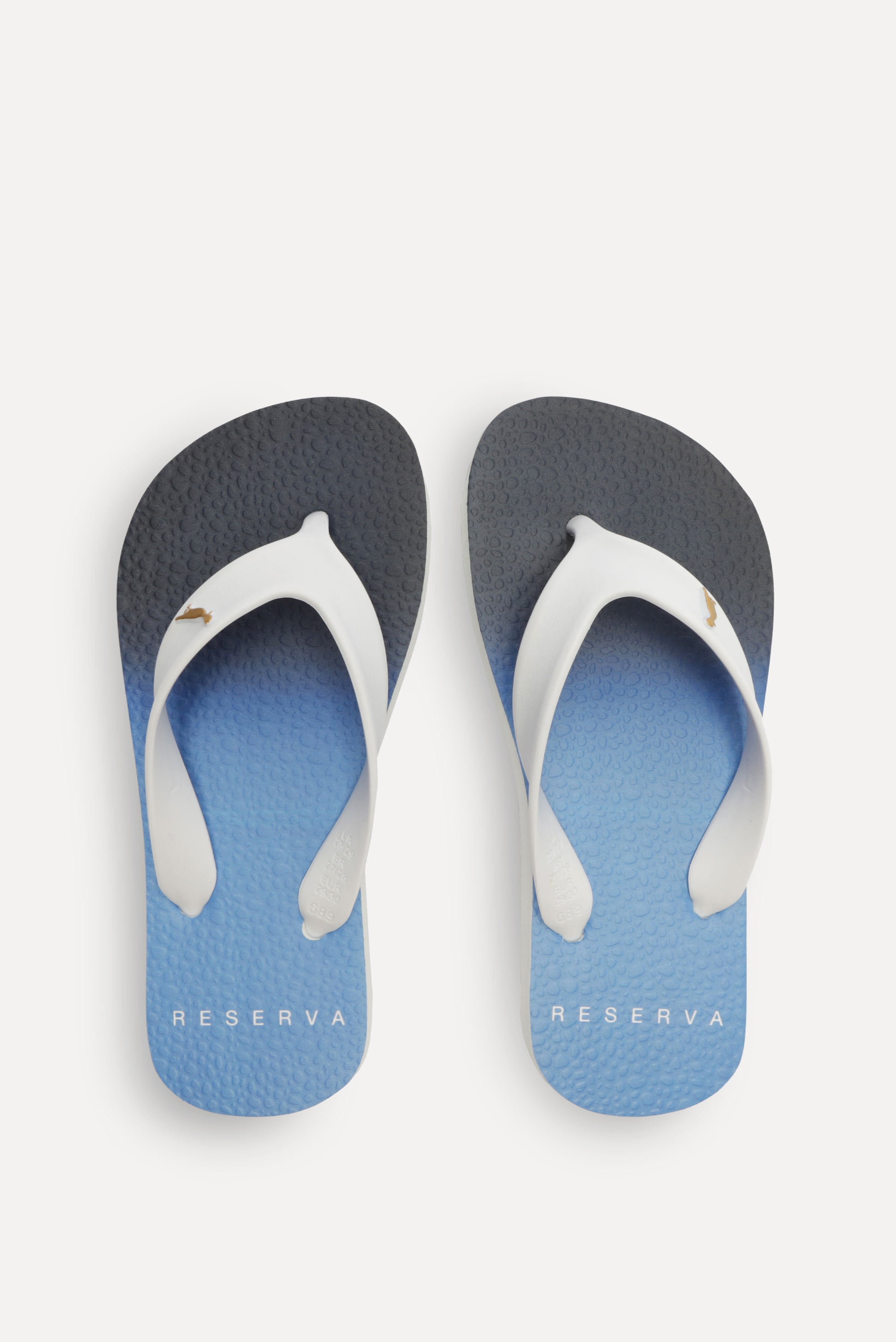 O Chinelo Rmi Degrade Anoitecer é o conforto da areia nos pés do seu Mini! É feito de sola emborrachada e com tira TPU. Sua cor é em degradê de azul com preto e sua assinatura fica por conta do RESERVA na sola e do nosso pica-pau na tira. Comprando esta peça, você viabiliza cinco pratos de comida através do nosso Programa 1P5P. Chinelo produzido eticamente no Brasil.