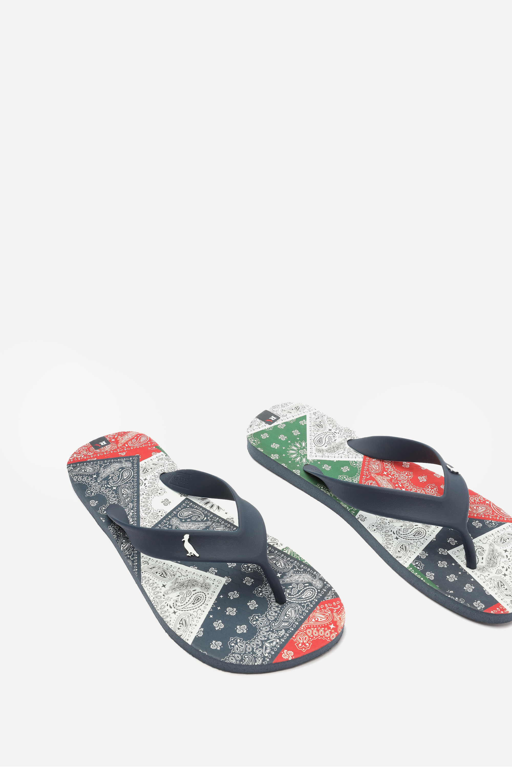 A estampa bandana chega também para o nosso clássico chinelo Trancoso, em três propostas de cores, pra quem busca uma combinação mais colorida ou mais sóbria como o todo branco ou marinnho.. O solado 100% de borracha natural não deforma com o tempo, você pode usar e molhar à vontade. Ele é antiaderrente, que aumenta a estabilidade e dá maior segurança. E para dar aquele toque final, a estampa é exclusiva Reserva.