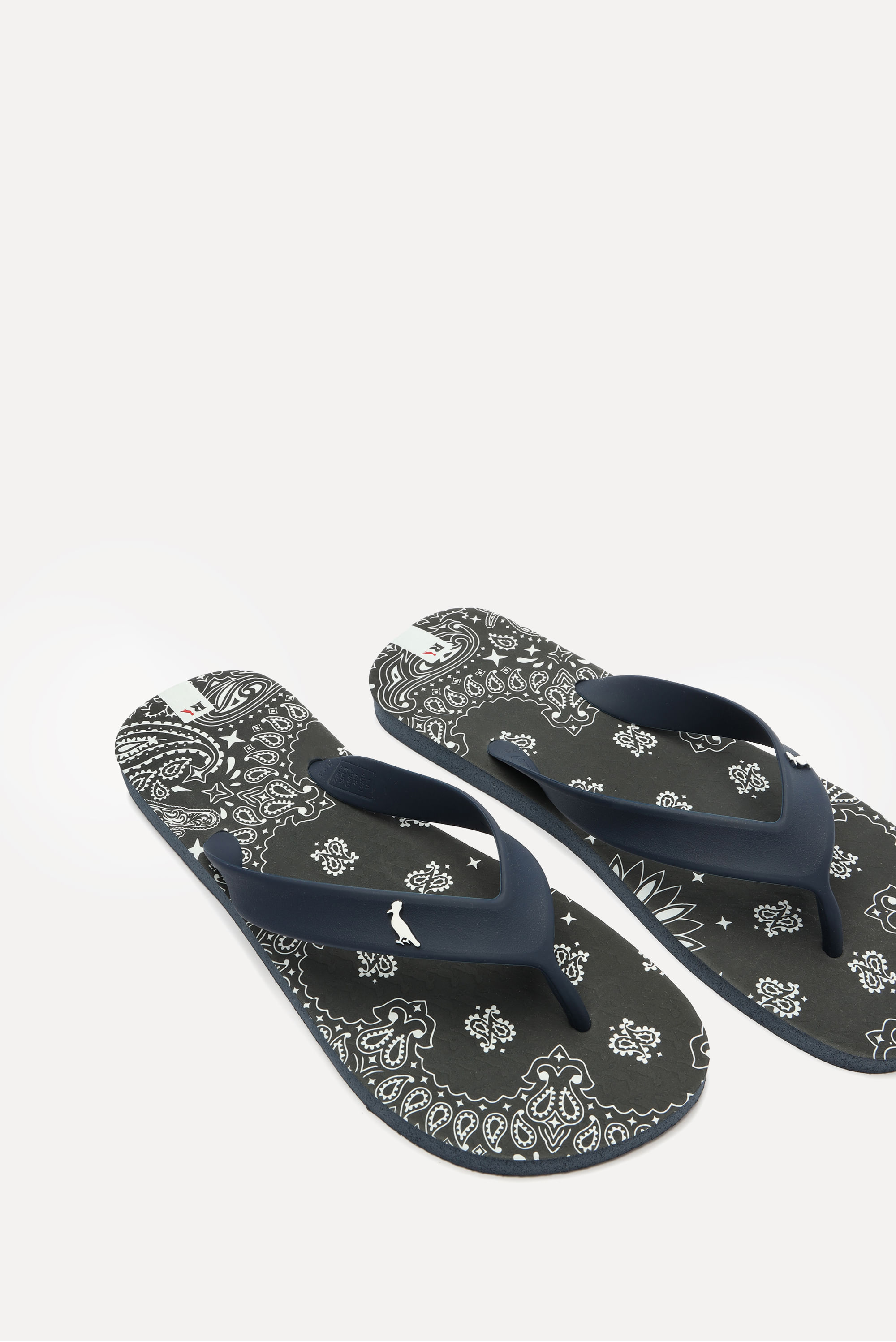 A estampa bandana chega também para o nosso clássico chinelo Trancoso, em três propostas de cores, pra quem busca uma combinação mais colorida ou mais sóbria como o todo branco ou marinnho.. O solado 100% de borracha natural não deforma com o tempo, você pode usar e molhar à vontade. Ele é antiaderrente, que aumenta a estabilidade e dá maior segurança. E para dar aquele toque final, a estampa é exclusiva Reserva.