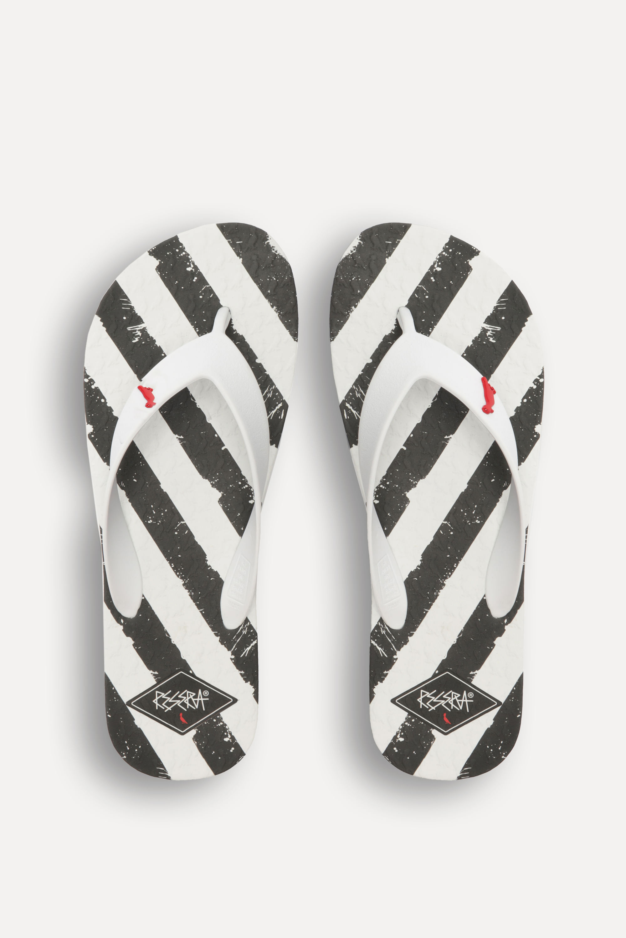 O Chinelo Rsv Faixa é o conforto da areia aos seus pés! Feito de sola emborrachada e com tira TPU, possui listras pretas e brancas em diagonal. Sua assinatura fica por conta do pica-pau vermelho na tira. Comprando esta peça, você viabiliza cinco pratos de comida através do nosso Programa 1P5P. Chinelo produzido eticamente no Brasil. <br>Tamanho da palmilha: 25/26-18; 27/28-19.4 29/30-20.6 31/32-20.7 33/34-22 35/36-23.3 37/38-25.9 39/40-27.3 41/42-28.6 43/44-30 45/46-31.3 </br>