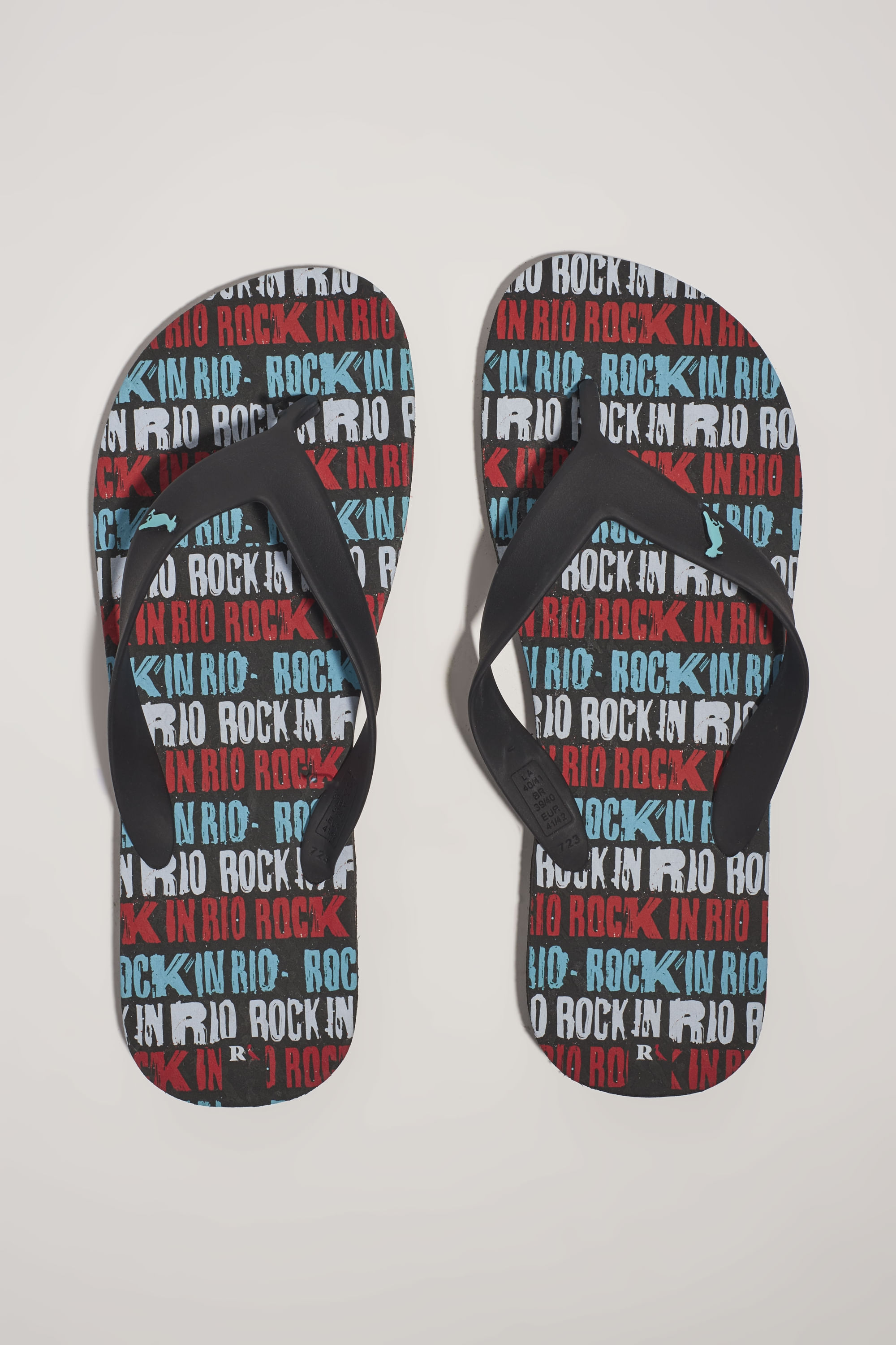 O Chinelo Rock Type possui o solado feito em 100% borracha natural, que não se desgasta com o tempo e você pode usar à vontade. Além disso, ele é antiderrapante, garantindo maior estabilidade e segurança. E para dar aquele toque final, a estampa é exclusiva, o que garante ainda mais estilo na época do festival. Produto Oficial do Rock in Rio.