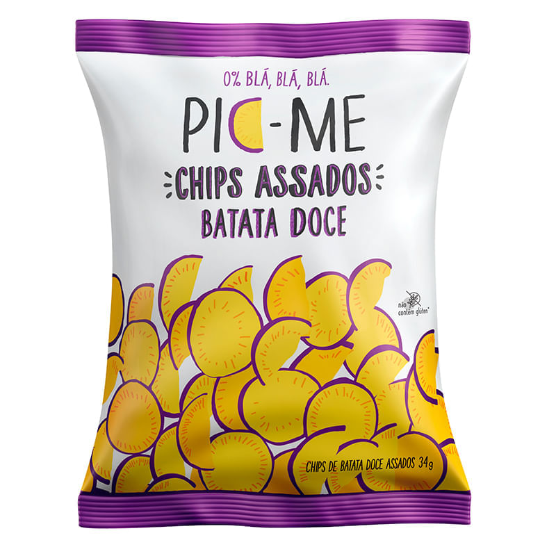 O Chips de Batata Doce, da Pic-me é um snack elaborado com batata doce cortada em formato de chips e temperada com uma pitada de sal marinho. Traz a novidade de ser muito crocante e mesmo assim não ser feito com fritura e, sim assado. É livre de gordura trans, conservantes artificiais e glúten.