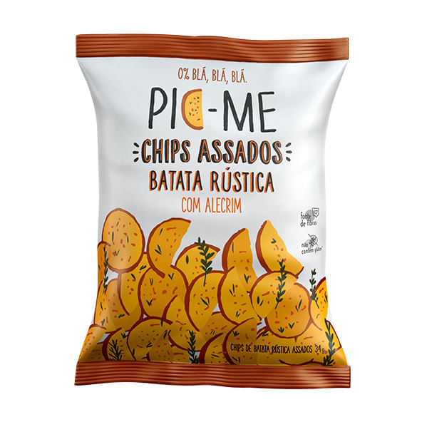 O Chips de Batata rústica com alecrim, 34g, da Pic-me, é um snack elaborado com batata cortada em formato de chips, temperada com alecrim e uma pitada de sal marinho. Muito crocante, livre de fritura e glúten, ainda é fonte de fibras.