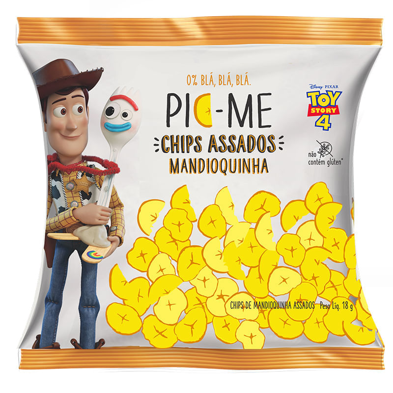 O Chips Assado Disney Mandioquinha, da Pic-me, é um snack elaborado com mandioquinha cortada em formato de chips e temperada com uma pitada de sal marinho. Muito crocante e livre de frituras. É assado, sem gordura trans, conservantes artificiais e glúten.