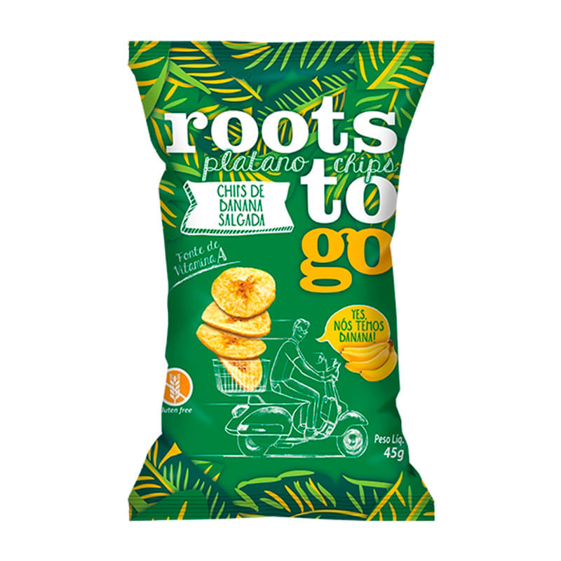 <p>A <strong>Chips Banana Salgada Roots To Go 45g</strong>, é um snack desenvolvido a partir de ingredientes naturais não transgênicos que resultam em um produto final com textura crocante como um salgadinho com um leve toque adocicado devido à banana, porém mais saudável e nutritivo.</p> Sugestão de consumo: <p>Perfeito para ser consumido a qualquer hora e a qualquer lugar devido à sua praticidade. Ideal para consumir como lanche intermediário, ou para substituir os salgadinhos convencionais quando der vontade.</p> Motivos para escolher o produto: <ul> <li> <p>Prático</p> </li> <li> <p>Isento de glúten</p> </li> <li> <p>Sem lactose</p> </li> <li> <p>Sem adição de conservantes e corantes</p> </li> <li> <p>Ingredientes não transgênicos</p> </li> <li> <p>Vegano</p> </li> </ul> <strong>Sobre a marca:</strong> <p>A <strong>Roots to Go</strong>, é uma empresa especializada em Snacks Vegetais, produzindo salgadinhos mais saudáveis do que os convencionais. A Roots traz produtos naturais, sem glúten, sem lactose para atender às mais diversas necessidades, e ainda são fabricados com ingredientes não-transgênicos para obter o verdadeiro sabor natural das raízes e frutas 100% brasileiras.</p>
