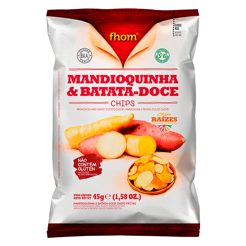 <p>Informações técnicas do produto:<br>O Chips de Batata doce e Mandioquinha, da Fhom, são chips feitos com apenas quatro ingredientes 100% naturais. São livres de conservantes, zero gordura trans e feitos com sal light. Possui o selo Kosher, ou seja, é feito de acordo com os preceitos judaicos.<br><br>Recomendação de consumo:<br>Os Chips de Batata Doce e Mandioquinha, são ótimas opções de petiscos e podem ser consumidos a qualquer hora do dia, levando praticidade junto com você, através de um alimento saboroso e natural.<br><br>Por que escolher esse produto?<br>100% natural<br>Isento de glúten<br>Zero gordura trans<br>Feito com sal light<br>Sem colesterol<br>Livres de conservantes<br>Selo Kosher<br>Certificado da Sociedade Vegetariana Brasileira<br>Sobre a marca:<br>A Fhom, é uma empresa criada em 1994, que possui como objetivo fornecer produtos de qualidade superior aos clientes, respeitando princípios como inovação tecnológica, apresentação diferenciada e extremo cuidado na fabricação. Atualmente possui produtos com certificado orgânico ECOCERT e SVB, além de todos serem feitos com o mais restrito controle, para garantir a não contaminação com glúten, lactose e outros ingredientes alergênicos.<br><br></p>