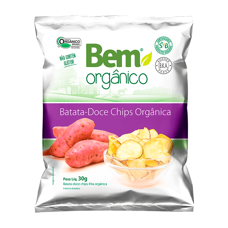 <p>Informações técnicas do produto:<br>Batata Chips Orgânica Lisa, 30g, 1 Unidade, Bem Orgânico é produzida com ingredientes naturais, sem agrotóxicos, corantes ou conservantes artificiais. Possui teor reduzido de sódio e são fontes de fibras!<br><br>Recomendação de consumo:<br>Ideal para ser consumida entre as refeições principais, como almoço e jantar.<br><br>Informações sobre alergênicos:<br>Pode conter trigo, soja, leite e amendoim.<br><br>Por que escolher esse produto?:<br>Produto light (Redução de sódio)<br>Com selo de produto orgânico<br>Aprovado pela Sociedade Vegetariana Brasileira<br>Mais natural – produzida sem aditivos químicos</p>