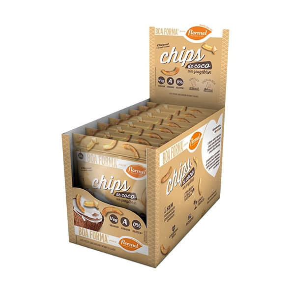 Informações técnicas do produto<br> O Chips de Coco com Gengibre da Flormel, é assado e é composto por apenas três ingredientes: coco in natura, gengibre em pó e xilitol. É também um produto sem conservantes, sem aromatizante e sem corantes, e é adoçado pelo xilitol. <br> <br> Xilitol: possui cerca de 40% menos calórico que o açúcar;<br> Coco: rico em TCM (triglicerídeos de cadeia média), uma fonte de gordura boa.<br> Gengibre: raiz rica em antioxidantes.<br> <br> Recomendação de consumo<br> Por ser prático, pode ser consumido em qualquer horário do dia, como em lanches intermediários, ou como desejar.<br> <br> <br> <br> Por que escolher esse produto?<br> Sem glúten;<br> Prático;<br> Sem corantes;<br> Fonte de gordura boa;<br> Rico em TCM;<br> Fonte de antioxidantes, o que pode ajudar na proteção contra o envelhecimento precoce;<br> Sem conservantes;<br> Sem aromatizantes.