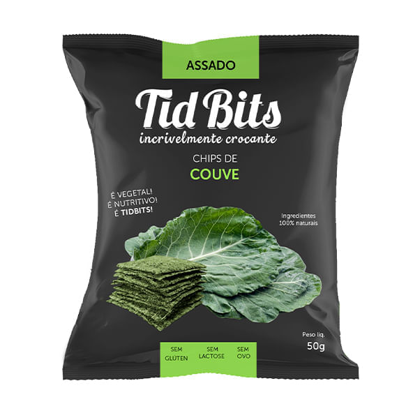 <p>O <strong>Chips de Couve</strong>, da <strong>Tid Bits</strong>, 50g, é um snack feito com vegetais frescos e nutritivos que fornecem fibras, vitaminas e minerais, para complementar sua alimentação. Assado lentamente no forno, é incrivelmente crocante, leve e saboroso.</p> Sugestão de consumo: <p>Ideal para os lanches entre as refeições. Tenha sempre na bolsa para consumir quando bater aquela fome ou até como aperitivo para curtir com os amigos.</p> Benefícios: <ul> <li>2,3 g de fibras na porção</li> <li>Livre de ingredientes de origem vegetal</li> <li>Sem glúten</li> <li>Sem lactose</li> <li>Sem ovo</li> <li>Assado</li> <li>Livre de corantesouconservantesartificiais</li> </ul> A marca: <p>A Tid Bits da Sabor Saudável, é uma linha de produtos que transforma verduras e legumes em chips leves e crocantes. A Sabor Saúde é uma marca com mais de 30 anos de experiência, sua fábrica não contém alimentos com glúten para produção do Tid Bits.</p>