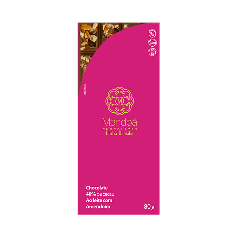 <p>Informações técnicas do produto:<br>O Chocolate 40% ao Leite Com amendoim Caramelizado 80g, da Mendoá é feito com chocolate 40% de cacau fino de origem, harmonizado com micro pedaços de amendoim. Uma fina mistura tropical de alta gastronomia do chocolate para agradar o seu paladar.<br><br>Recomendação de consumo:<br>Uma ótima opção de doce saudável e poderá ser consumido aqualquer hora ao longo dia. Pode ser utilizado para a preparação de sobremesas, bebidas e caldas.<br><br>Por que escolher esse produto?<br>Sem conservantes<br>Sem glúten<br>Açúcar orgânico<br>Livre de gorduras trans<br>100% natural<br>Sem adoçantes, aromatizantes e corantes artificiais<br>Informações sobre alergênicos:<br>Contém leite. Contém amendoim. Contém lecitina de soja. Pode conter traços de castanhas.<br><br>Sobre a marca<br>Os Chocolates Mendoá são preciosidades concebidas em plena Floresta Atlântica brasileira. A partir de amêndoas de cacau selecionadas e com o uso de tecnologia de vanguarda, todas as etapas acontecem na Fazenda Riachuelo, em Ilhéus, Bahia, Brasil – do cultivo do cacau até a embalagem para a sua apreciação. Nesta fazenda, pratica-se o cultivo tradicional no sistema Cabruca, que consiste na implantação da cultura do cacau sob a proteção das árvores da Mata Atlântica, de forma descontínua e circundada por vegetação nativa.</p>