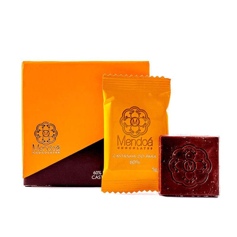 <p>Informações técnicas do produto:<br>O Chocolate 60% Cacau com Castanha do Pará, da Mendoá, faz parte da linha Clássica da marca e contém 60% de cacau em sua composição. Combina o amargor do cacau com pedaços discretos de castanha do Pará, trazendo uma diversidade de sensações. Está disponível na versão Cubo com 24 tabletes de 5g cada, livre de glúten, corantes e adoçantes artificiais.<br><br>Recomendação de consumo:<br>Produto pronto para o consumo. Pode ser consumido a qualquer hora do dia, como sobremesa ou lanche, ou utilizado na preparação de doces, bebidas e caldas.<br><br>Informações sobre alergênicos:<br>Contém castanha do Pará. Contém lecitina de soja. Pode conter traços de leite e traços de castanha de caju.<br><br>Por que escolher esse produto?<br>Sem glúten<br>Sem adoçantes artificiais<br>Livre de conservantes<br>Livre de aromatizantes artificiais<br>Mendoá<br>Os Chocolates Mendoá são preciosidades concebidas em plena Floresta Atlântica brasileira. A partir de amêndoas de cacau selecionadas e com o uso de tecnologia de vanguarda, todas as etapas acontecem na Fazenda Riachuelo, em Ilhéus, Bahia, Brasil – do cultivo do cacau até a embalagem para a sua apreciação. Nesta fazenda, pratica-se o cultivo tradicional no sistema Cabruca, que consiste na implantação da cultura do cacau sob a proteção das árvores da Mata Atlântica, de forma descontínua e circundada por vegetação nativa.</p>
