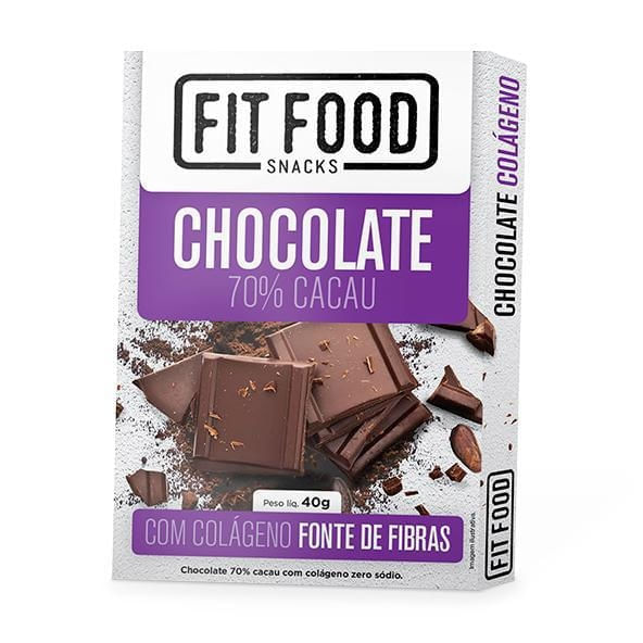 Chocolate 70% Cacau Com Colágeno Zero Sódio Para Ingestão Controlada de Açúcares Fit Food Caixa 40 g.