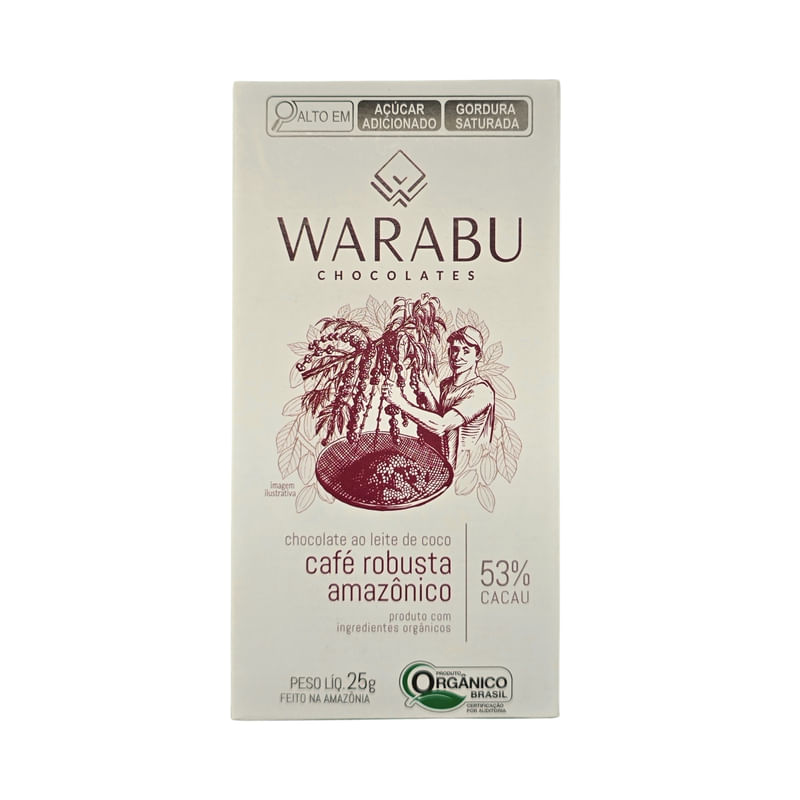 <p>O <strong>chocolate Wabaru 53% cacau ao leite de coco + café robusta amazônico</strong> é desenvolvido com ingredientes naturais selecionados, orgânicos, livres de glúten e de lactose. Cada mordida proporciona uma explosão de sabores, com notas de café e textura cremosa.</p> <h2><strong>Sugestão de consumo:</strong></h2> <p>Super versátil, o chocolate Wabaru pode ser consumido como sobremesa ou fazendo parte de receitas culinárias.</p> <h2><strong>Motivos para escolher o produto:</strong></h2> <ul> <li> <p>Embalagem com 25g;</p> </li> <li> <p>Ingredientes orgânicos;</p> </li> <li> <p>Clean-label;</p> </li> <li> <p>Vegano;</p> </li> <li> <p>Sem OGM (organismos geneticamente modificados);</p> </li> <li> <p>Sem conservantes, adoçantes e aromas artificiais;</p> </li> <li> <p>Livre de glúten, soja e leite;</p> </li> <li> <p>Feito com o método Bean to bar: utiliza poucos ingredientes, resultando em um chocolate mais puro, pouco processado, muito mais saboroso e nutritivo.</p> </li> </ul> <h2><strong>A Marca</strong></h2> <p>A Wabaru foi fundada pelo chef e empresário Jorge Neves no ano de 2018, a marca nasceu com o propósito de resgatar a cultura do cultivo do cacau na Amazônia. Cada chocolate é desenvolvido com cacau selvagem orgânico, de espécie nativa, situada na bacia Amazônica, garantindo um chocolate rico em sabor, responsabilidade e compromisso com a natureza e as pessoas que nela vivem.</p> <p> </p>
