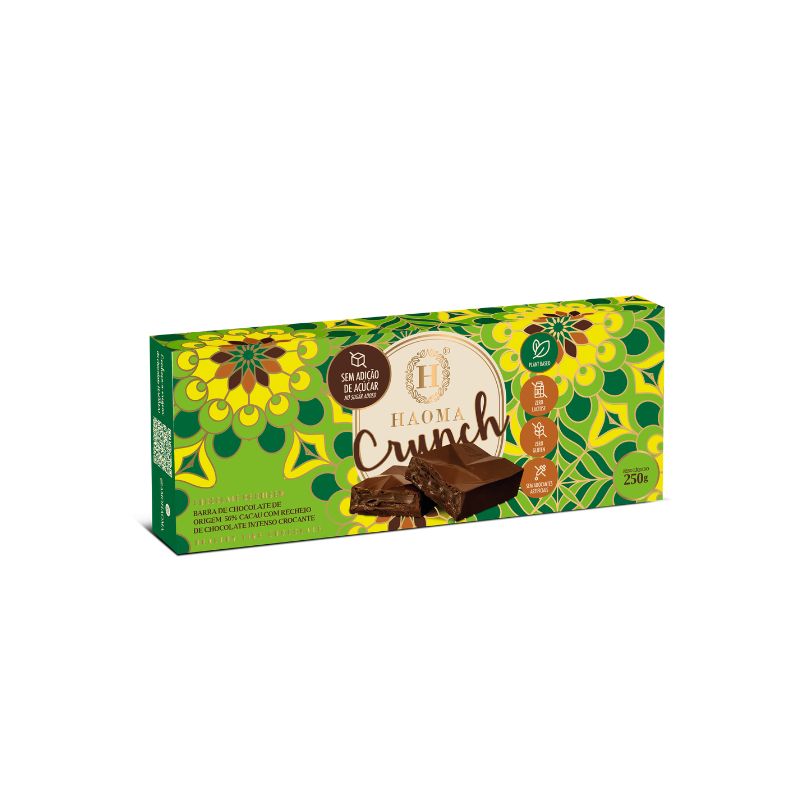 <h2 style="text-align: justify;"><strong>Barra Crunch Vegano 250g</strong></h2> <p style="text-align: justify;">A <strong>barra</strong> <strong>de chocolate</strong> <strong>crunch</strong> recheada com <strong>chocolate intenso crocante</strong> <strong>Haoma</strong> é elaborada com ingredientes nobres, como o cacau 56% genuinamente brasileiro, totalmente vegano, é delicioso e sem adição de açúcar com ingredientes naturais.</p> <p style="text-align: justify;"><strong>Motivos para escolher o produto:</strong></p> <p style="text-align: justify;">● Sem adição de açúcares; </p> <p style="text-align: justify;">● Vegano; </p> <p style="text-align: justify;">● Sem adoçantes artificiais;</p> <p style="text-align: justify;">● Elaborado com ingredientes naturais;</p> <p style="text-align: justify;">● 56% cacau genuinamente brasileiro de qualidade.</p> <h2 style="text-align: justify;"><strong>A Marca</strong></h2> <p style="text-align: justify;">A Haoma foi criada no início de 2017, com o intuito de oferecer chocolates e doces exclusivos, que fossem realmente saudáveis e saborosos, compostos apenas por ingredientes naturais, com sofisticação e requinte em cada detalhe. Neste pequeno espaço de tempo, a Haoma apresentou um crescimento meteórico e hoje é a principal referência em doces saudáveis do país.</p>