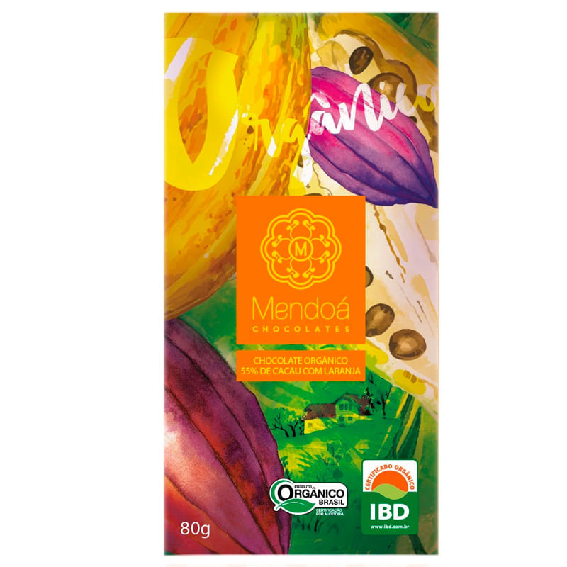 <p>Informações técnicas do produto:<br>O Chocolate Mendoa Orgânico 55% Cacau com Laranja, da Mendoá Chocolates é feito sob medida para saciar aquela vontade de sentir o sabor do chocolate derretendo na boca e ainda ser surpreendido pelo frescor cítrico da laranja. É produzido a partir autêntico chocolate orgânico, um produto livre de contaminação química, disponível em uma versão tablete de 80g.<br><br>Recomendação de consumo:<br>Uma ótima opção de doce saudável que pode ser consumido a qualquer hora ao longo dia. Experimente também adicionar em preparações de sobremesas, bebidas e caldas.<br><br>Por que escolher esse produto?<br>Possui alto teor de cacau<br>Orgânico<br>Não contém glúten<br>Sem lactose<br>Sem conservantes<br>Açúcar orgânico<br>Livre de gorduras trans<br>100% natural<br>Sem adoçantes, aromatizantes e corantes artificiais<br>Informações sobre alergênicos:<br>Contém lecitina de soja. Pode conter traços de leite e traços de castanhas e amendoim.<br><br>Sobre a marca<br>Os Chocolates Mendoá são preciosidades concebidas em plena Floresta Atlântica brasileira. A partir de amêndoas de cacau selecionadas e com o uso de tecnologia de vanguarda, todas as etapas acontecem na Fazenda Riachuelo, em Ilhéus, Bahia, Brasil – do cultivo do cacau até a embalagem para a sua apreciação. Nesta fazenda, pratica-se o cultivo tradicional no sistema Cabruca, que consiste na implantação da cultura do cacau sob a proteção das árvores da Mata Atlântica, de forma descontínua e circundada por vegetação nativa.</p>
