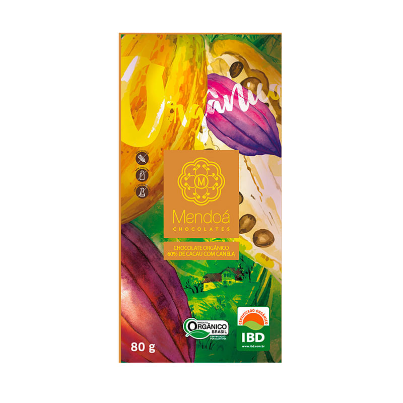 Chocolate  Orgânico 60% e Cacau com Canela  80g - Mendoá
