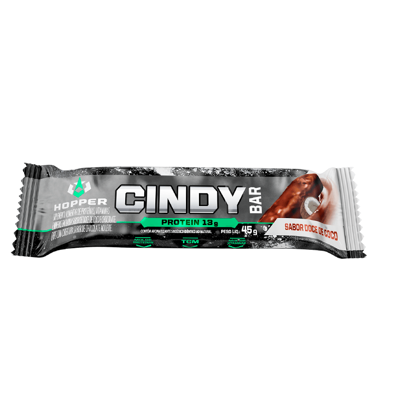 <p>A <strong>Cindy Bar sabor Doce de Coco</strong>, da <strong>Hopper</strong>, é uma barrinha que fornece <strong>13 g de proteínas</strong> de alto valor biológico, com adição de TCM, carboidratos de baixo índice glicêmico além de um mix de vitaminas e minerais.</p> Sobre os ingredientes: <ul> <li> <strong>Caseinato de cálcio: </strong>faz parte da <strong>caseína</strong>, composto por aproximadamente 90% de proteína, além de apresentar baixo teor de gordura e de lactose.</li> <li> <strong>Whey Protein: </strong>proteínas do soro do leite, fornecem aminoácidos essenciais, ou seja, aqueles que o nosso corpo não produz e precisamos obter por meio da dieta.</li> </ul> <ul> <li> <strong>TCM: </strong>triglicerídeos de cadeia média, é uma fonte de energia rápida para o organismo.</li> </ul> Alérgicos: <p>Contém leite, derivados de leite e soja. Pode conter soja, amendoim, amêndoa, avelã, castanha-de-caju, castanha-do-pará, pecãs, nozes. Contém lactose.</p> Recomendação de consumo: <p>Alternativa para os lanches intermediários de quem busca o máximo desempenho em todos os treinos.</p> Por que escolher este produto? <ul> <li>13 g de proteínas</li> <li>Sem glúten</li> <li>Baixo sódio</li> <li>Fonte fibras</li> <li>Com mix de vitaminas</li> </ul> Sobre a marca: <p></p> <p>A Hopper é uma marca que nasceu da vivência de atletas de alta performance e foi combinada ao respaldo científico e tecnológico da Integralmédica, referência em sports nutrition na América Latina. Diversos especialistas de nutrição e desempenho esportivo estão envolvidos no desenvolvimento dos produtos, que contam com alta tecnologia de produção, pureza e qualidade de padrão internacional.</p>