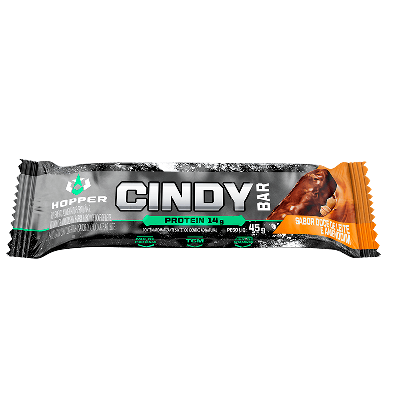 <p>A <strong>Cindy Bar sabor Doce de Leite</strong>, da <strong>Hopper</strong>, é uma barrinha que fornece <strong>13 g de proteínas</strong> de alto valor biológico, com adição de TCM, carboidratos de baixo índice glicêmico além de um mix de vitaminas e minerais.</p> Sobre os ingredientes: <ul> <li> <strong>Caseinato de cálcio: </strong>faz parte da <strong>caseína</strong>, composto por aproximadamente 90% de proteína, além de apresentar baixo teor de gordura e de lactose.</li> <li> <strong>Whey Protein: </strong>proteínas do soro do leite, fornecem aminoácidos essenciais, ou seja, aqueles que o nosso corpo não produz e precisamos obter por meio da dieta.</li> </ul> <ul> <li> <strong>TCM: </strong>triglicerídeos de cadeia média, é uma fonte de energia rápida para o organismo.</li> </ul> Alérgicos: <p>Contém leite, derivados de leite e soja. Pode conter soja, amendoim, amêndoa, avelã, castanha-de-caju, castanha-do-pará, pecãs, nozes. Contém lactose.</p> Recomendação de consumo: <p>Alternativa para os lanches intermediários de quem busca o máximo desempenho em todos os treinos.</p> Por que escolher este produto? <ul> <li>13 g de proteínas</li> <li>Sem glúten</li> <li>Baixo sódio</li> <li>Fonte fibras</li> <li>Com mix de vitaminas</li> </ul> Sobre a marca: <p></p> <p>A Hopper é uma marca que nasceu da vivência de atletas de alta performance e foi combinada ao respaldo científico e tecnológico da Integralmédica, referência em sports nutrition na América Latina. Diversos especialistas de nutrição e desempenho esportivo estão envolvidos no desenvolvimento dos produtos, que contam com alta tecnologia de produção, pureza e qualidade de padrão internacional.</p>