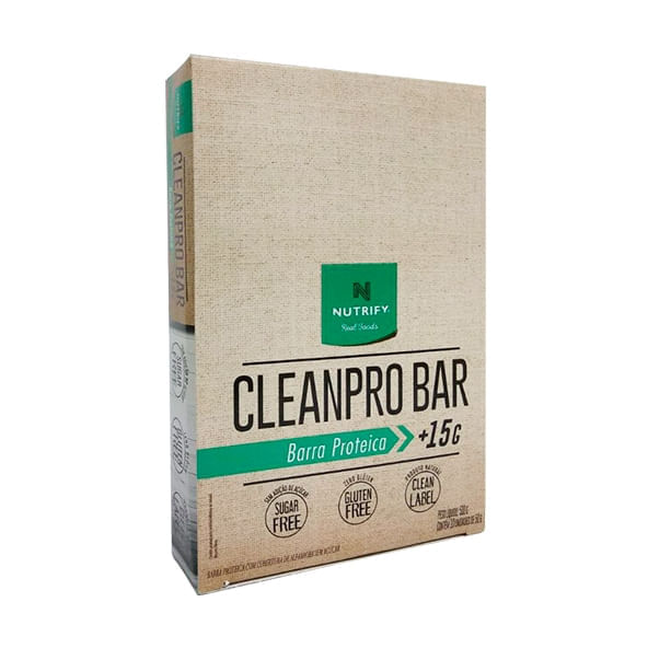 Informações técnicas do produto:<br> O Cleanpro Bar Maça e Chia 50g x 10, da Nutrify Nutrify é uma barra de proteína composta por um blend proteico de caseinato de cálcio e whey protein isolado. <br> <br> Recomendação de consumo:<br> <br> Sugere-se o consumo em lanches intermediários ou de acordo com necessidades específicas de cada pessoa.<br> <br> Por que escolher esse produto?<br> Adoçado com stevia<br> Alto teor de fibra<br> Sem glúten<br> Fornece 16g de proteína por barra<br> Sem adição de açúcar<br> Sem lactose<br> Livre de gordura trans<br> Sobre a marca<br> A Nutrify Real é uma empresa que visa qualidade de vida como parte integrante do dia a dia, por isso busca desenvolver produtos para garantir o bem-estar das pessoas que buscam além de tudo, uma alimentação saudável e equilibrada. Por este motivo que a empresa busca sempre informações científicas para se apropriar dos assuntos sobre alimentos e, contam com uma linha de alimentos funcionais de alta qualidade.
