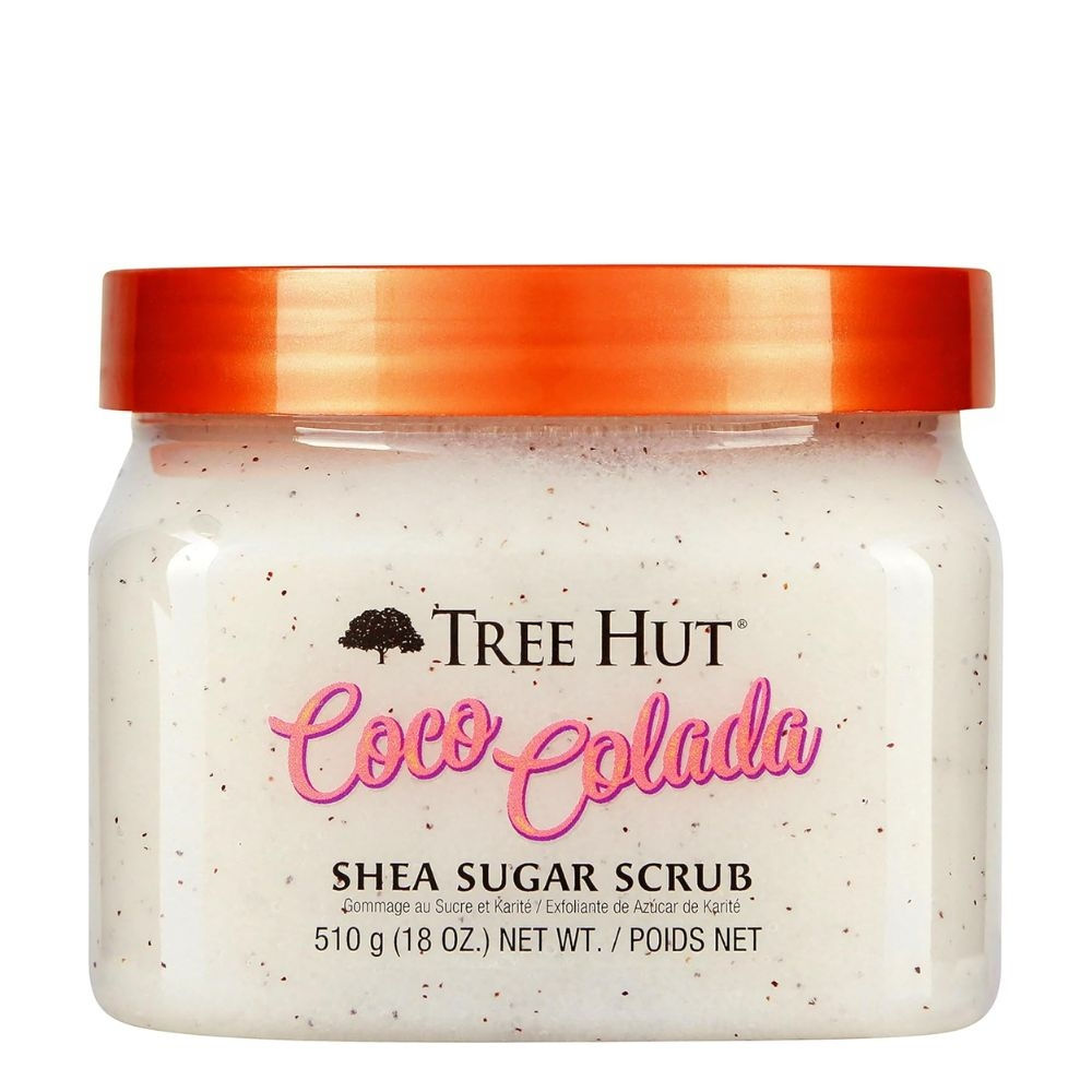 Os ingredientes cuidadosos trabalham juntos para hidratar, renovar e suavizar a pele enquanto removem a pele seca e opaca. Além disso, nosso Coco Colada Shea Sugar Scrub cheira a vibrações de verão à beira da piscina com notas de coco, abacaxi e leite de coco. Os esfoliantes corporais de açúcar de karité Tree Hut são isentos de álcool, isentos de formaldeído, isentos de glúten, isentos de parabenos, isentos de sulfato e veganos.<br /> <br /> A esfoliação corporal esfoliante remove a pele opaca e seca para revelar uma pele brilhante, macia e suave<br /> O açúcar é um esfoliante natural que elimina eficazmente a pele morta enquanto ajuda a aumentar a circulação na superfície da pele<br /> A Manteiga de Karité ajuda a hidratar profundamente, nutrir e suavizar a pele seca, ajudando a promover a elasticidade da pele<br /> O abacaxi contém vitamina C, que ama a pele, para ajudar a clarear e uniformizar o tom da pele<br /> O óleo de coco ajuda a hidratar e suavizar a pele<br /> Óleo de Abacate, Óleo de Macadâmia, Óleo de Laranja Doce, Óleo de Amêndoa Doce, Óleo de Prímula e Óleo de Cártamo condicionam a pele para ajudar a prevenir o ressecamento e equilibrar a hidratação da pele para uma pele brilhante