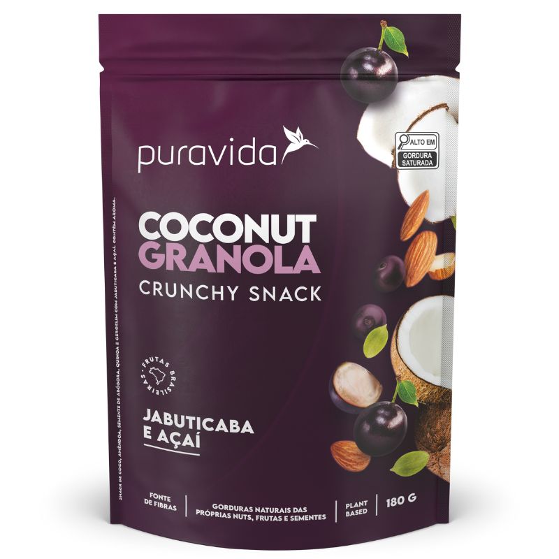 <h2 style="text-align: justify;"><strong>Coconut Granola Jabuticaba e Açai Puravida 180g</strong></h2> <h2 style="text-align: justify;">A <strong>Coconut Granola </strong>da <strong>Pura Vida </strong>vem em um novo sabor,<strong> jabuticaba e açaí</strong>. Ela une ingredientes 100% naturais e saudáveis, com uma composição nutricionalmente equilibrada em gorduras boas, vitaminas e minerais, além dessa combinação de sabores tropicais que trazem o toque brasileiro. Com muita crocância e livre de açúcar refinado e aditivos sintéticos ela se torna uma ótima opção de acompanhamento para os seus lanches.</h2> <h2 style="text-align: justify;"><strong>Sobre os ingredientes:</strong></h2> <h2 style="text-align: justify;"><strong>Lascas de coco, amêndoas, semente de abóbora e gergelim: </strong>fonte de gorduras boas, que podem contribuir no aumento da saciedade. </h2> <h2 style="text-align: justify;"><strong>Sugestão de consumo:</strong></h2> <h2 style="text-align: justify;">Consuma uma porção podendo adicionar a iogurtes, frutas e salada de frutas, açaí, receitas como bolos e pães doces. </h2> <h2 style="text-align: justify;"><strong>Motivos para escolher o produto:</strong></h2> <ul style="text-align: justify;"> <li> <h2>Seleção de ingredientes nobres;</h2> </li> <li> <h2>Fonte de gorduras boas e fibras;</h2> </li> <li> <h2>Plant Based;</h2> </li> <li> <h2>Sem glúten;</h2> </li> <li> <h2>Sem açúcar;</h2> </li> <li> <h2>Sem corantes, conservantes e aromatizantes artificiais. </h2> </li> </ul> <h2 style="text-align: justify;"> </h2> <h2 style="text-align: justify;"><strong>A Marca</strong></h2> <h2 style="text-align: justify;">Pura Vida é uma empresa que nasceu com o propósito de facilitar a prática de um estilo de vida orgânico. Acreditam que a qualidade daquilo que escolhemos comer, pode afetar o funcionamento do nosso corpo, funcionamento dos órgãos, humor, foco e mente. Através de suas vitaminas, suplementos, cosméticos, granolas, colágenos e outros produtos elaborados com ingredientes de altíssima qualidade podem contribuir com a sinergia do corpo. </h2> <h2 style="text-align: justify;"><br /><br /></h2>
