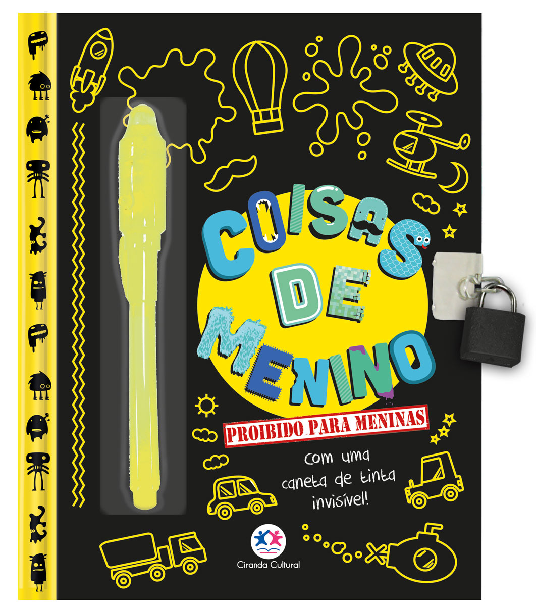 Se você é um garoto esperto e quer registrar o que pensa de uma forma criativa e secreta, encontrou o livro certo. Use a caneta especial para escrever seus pensamentos mais absurdos e seus desejos mais espetaculares. Use o cadeado para proteger seus segredos.