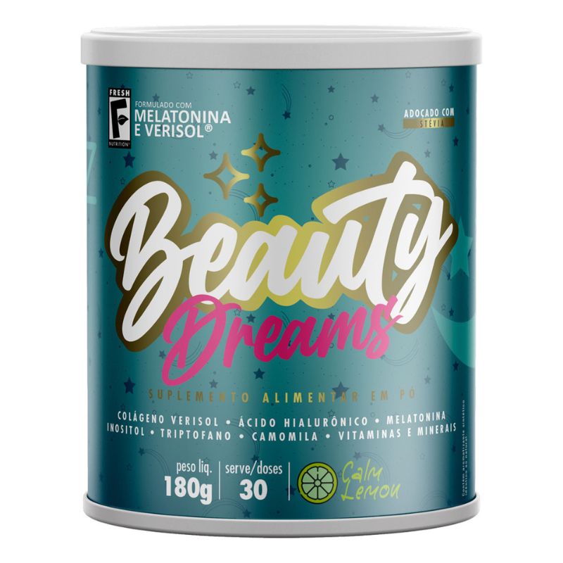 <p dir="ltr">O<strong> Beauty Dreams da Fresh Nutrition</strong>, é um suplemento elaborado com colágeno Verisol®, melatonina, triptofano, inositol, ácido hialurônico, selênio e um blend de vitaminas. Possui sabor limão com toque de camomila, e é zero açúcar. </p> <h2 dir="ltr">Sobre os ingredientes:</h2> <p dir="ltr"><strong>Melatonina</strong>: hormônio responsável por promover relaxamento, favorecendo um sono de qualidade, além de possuir potencial anti-inflamatório.</p> <p dir="ltr"><strong>Colágeno Verisol®: </strong>os peptídeos bioativos de colágeno hidrolisado com peso molecular médio 2KDa auxiliam na manutenção da saúde da pele.</p> <h2 dir="ltr">Sugestão de consumo:</h2> <p dir="ltr">Recomenda-se diluir 1 dose (6g) em aproximadamente 200ml de água, e consumir a noite, ou conforme orientação do nutricionista.</p> <h2 dir="ltr">Motivos para escolher o produto:</h2> <ul> <li dir="ltr"> <p dir="ltr">500mg de triptofano;</p> </li> <li dir="ltr"> <p dir="ltr">Elaborado com colágeno Verisol®;</p> </li> <li dir="ltr"> <p dir="ltr">Baixo em calorias (12kcal por dose);</p> </li> <li dir="ltr"> <p dir="ltr">Não contém glúten;</p> </li> <li dir="ltr"> <p dir="ltr">Zero açúcar;</p> </li> <li dir="ltr"> <p dir="ltr">Adoçado com stévia – edulcorante natural.</p> </li> </ul> <h2 dir="ltr">A Marca</h2> <p dir="ltr">A <strong>Fresh Nutrititon </strong>é uma empresa do ramo de suplementos que trabalha com o objetivo de trazer ativos em sinergia para cada lifestyle, promovendo qualidade de vida e nutrição para todos.</p> <p> </p>