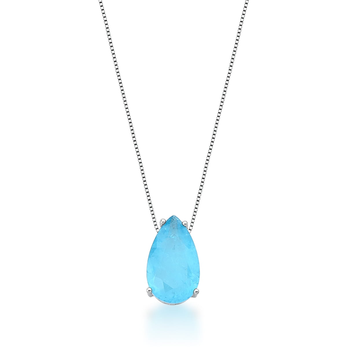 Colar com Pingente Cristal em Gota Fusion Azul Serena em Ródio - 2cm cordão