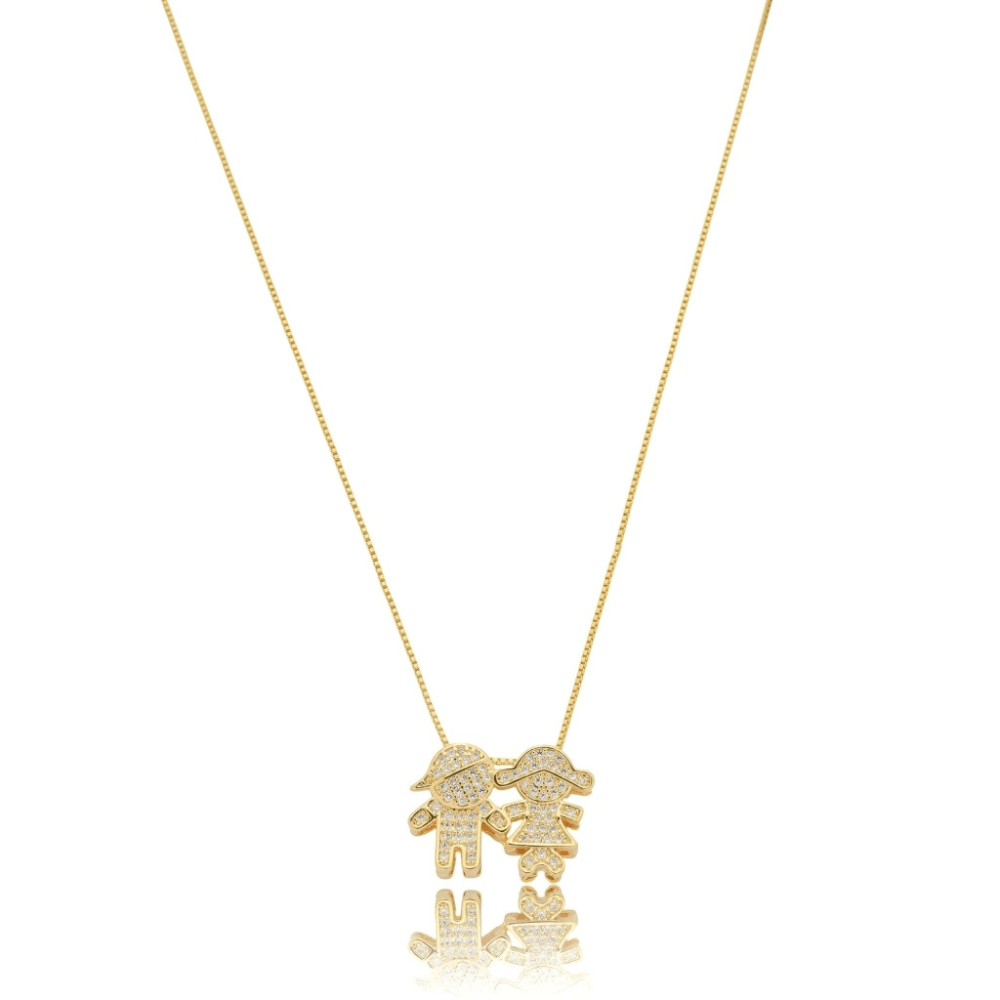 O Colar com pingente filhos menina menino com zirconias banhado em ouro 18k é um sofisticado colar mães e filhos repleto de significado, perfeito para simbolizar o amor incondicional entre mãe e filhos. Com um design delicado e atemporal, este colar com pingente filhos menina e menino traz dois pingentes encantadores em formato de menina e menino, representando a ternura e a conexão especial que une mães e filhos para sempre. A zirconia acrescenta brilho e elegância, tornando a esta semijoia ainda mais marcante e especial. Confeccionado com materiais de alta qualidade, este colar com pingente filhos menina e menino tem um excelente banho em ouro 18K, garantindo um acabamento duradouro. Perfeito para presentear em datas especiais, como Dia das Mães, nascimento de um filho ou qualquer outro momento inesquecível, este colar com pingente filhos menino e menina é a escolha certa para demonstrar carinho e afeto. Sua corrente delicada e ajustável proporciona um encaixe confortável, permitindo que a semijoia seja usada diariamente ou em eventos mais sofisticados. Além de seu design encantador, este colar com pingente filhos é hipoalergênico e livre de níquel, sendo seguro para peles sensíveis. Versátil e elegante, este colar com pingente filhos pode ser combinado com diferentes estilos e acessórios, agregando charme e sofisticação ao visual. Banho - ouro 18k Pedra - zirconias Tamanho - pingente: 1cm / corrente veneziana: 45cm + 5cm de extensor Cada detalhe, uma dedicação especial - Receba sua semijoia em um saquinho delicadamente perfumado Nós acreditamos que cada momento da sua jornada de compras conosco deve ser inesquecível, e é por isso que damos atenção especial aos detalhes. Você receberá sua semijoia envolvida em um saquinho reutilizável e exclusivo de nossa marca, delicadamente perfumado com uma essência encantadora, criada especialmente para tornar memorável a sua experiência conosco. Um Toque de Encanto ao Presentear - Surpreenda com nossa embalagem exclusiva Se você está presenteando alguém especial com nossas semijoias, saiba que nosso saquinho exclusivo será o toque final para um presente verdadeiramente encantador, mostrando que cada detalhe foi pensado com muito carinho. É uma forma de transmitir todo o afeto e cuidado que você dedica a quem receberá esse presente especial de nossa marca. Além disso, o saquinho é reutilizável, permitindo que a presenteada também desfrute de toda a beleza e charme dessa embalagem exclusiva. Aproveite essa experiência única conosco e encante-se com cada detalhe que preparamos para você. Seja para você ou para presentear, nossa embalagem perfumada tornará cada momento ainda mais especial.