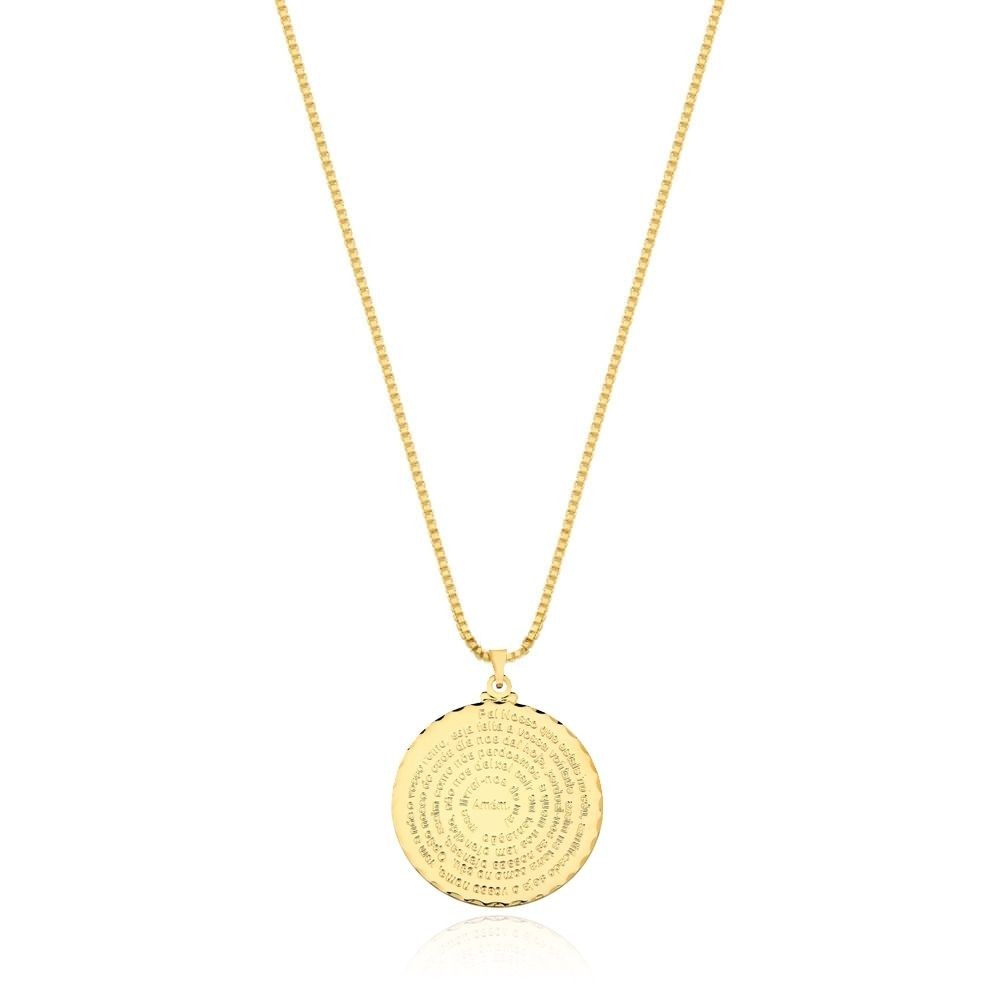 Conheça o Colar com Pingente "Pai Nosso", um colar religioso especial que traz consigo a oração mais conhecida, querida e poderosa, banhada em Ouro 18k, com um pingente médio de 2,5 cm de diâmetro. Este colar de Pai Nosso possui um pingente delicado e gracioso com a oração do Pai Nosso escrita em letras finas, simbolizando a conexão espiritual e a fé profunda de quem o usa. O banho em Ouro 18k confere um brilho radiante e duradouro ao colar de Pai Nosso, tornando-o uma peça deslumbrante e significativa. Possui também verniz antialérgico, segurança e conforto para quem usar. Este colar de Pai Nosso é um símbolo de devoção e crença, perfeito para mulheres que têm uma forte conexão com a sua fé e que desejam carregar a mensagem poderosa do Pai Nosso sempre consigo. O Colar com Pingente "Pai Nosso" é um colar religioso que traz conforto espiritual e um lembrete constante da presença divina em nossas vidas. Celebre a sua fé e espiritualidade com este colar de Pai Nosso e esteja sempre conectada com o poder e a proteção do Pai Nosso. Um colar religioso que será valorizada e apreciado por muitos anos, transmitindo uma mensagem de esperança e devoção em sua jornada de fé e crença. Banho - ouro 18k Pedra - sem pedras Tamanho do pingente - 2,5 cm de diâmetro Corrente - veneziana de 45cm + 5cm de extensor Cada detalhe, uma dedicação especial - Receba sua semijoia em um saquinho delicadamente perfumado Nós acreditamos que cada momento da sua jornada de compras conosco deve ser inesquecível, e é por isso que damos atenção especial aos detalhes. Você receberá sua semijoia envolvida em um saquinho reutilizável e exclusivo de nossa marca, delicadamente perfumado com uma essência encantadora, criada especialmente para tornar memorável a sua experiência conosco. Um Toque de Encanto ao Presentear - Surpreenda com nossa embalagem exclusiva Se você está presenteando alguém especial com nossas semijoias, saiba que nosso saquinho exclusivo será o toque final para um presente verdadeiramente encantador, mostrando que cada detalhe foi pensado com muito carinho. É uma forma de transmitir todo o afeto e cuidado que você dedica a quem receberá esse presente especial de nossa marca. Além disso, o saquinho é reutilizável, permitindo que a presenteada também desfrute de toda a beleza e charme dessa embalagem exclusiva. Aproveite essa experiência única conosco e encante-se com cada detalhe que preparamos para você. Seja para você ou para presentear, nossa embalagem perfumada tornará cada momento ainda mais especial.