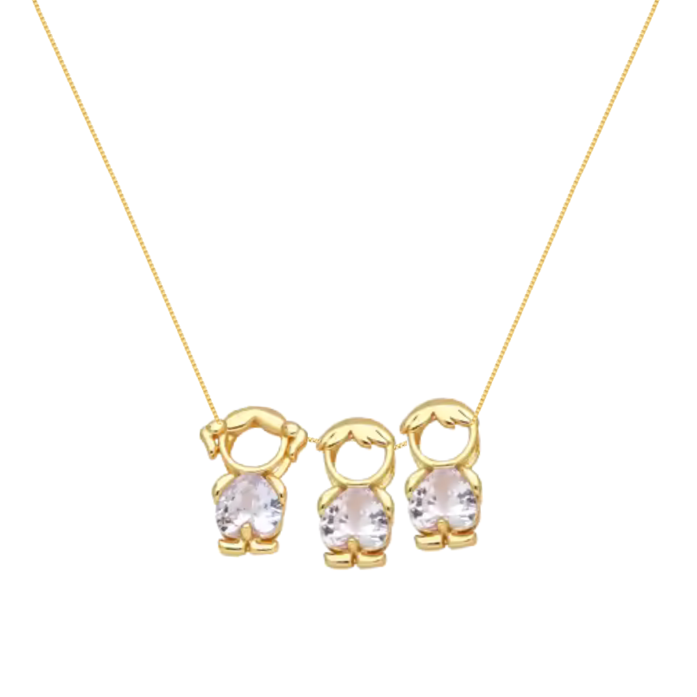 O delicado Colar filhos dois meninos uma menina cristal banhado ouro é uma semijoia delicada e repleta de significado, ideal para mães que desejam carregar consigo o amor incondicional por seus filhos amados. Os pingentes retratam menina e meninos, simbolizando a união e o vínculo eterno entre mãe e filhos, enquanto os cristais adicionam um toque especial de brilho e sofisticação. Banhado a ouro 18K, este colar filhos com dois meninos e uma menina com cristal combina elegância e durabilidade, garantindo um acabamento luxuoso e resistente ao tempo. A corrente veneziana fina e ajustável proporciona conforto para o uso diário. O cristal, além de sua beleza delicada, representa amor e proteção, tornando esta semijoia ainda mais significativa. Perfeito para presentear em aniversários, Dia das Mães ou qualquer ocasião especial, esse colar filhos com cristal banhado em ouro simboliza o afeto e a conexão entre mãe e filhos. Hipoalergênico e livre de níquel, é seguro para peles sensíveis e mantém seu brilho por muito tempo. Uma semijoia única que eterniza os laços mais preciosos da vida com charme e elegância. Banho - ouro 18k Pedra - cristal Tamanho - pingente: 2cm / corrente veneziana: 45cm + 5cm de extensor Cada detalhe, uma dedicação especial - Receba sua semijoia em um saquinho delicadamente perfumado Nós acreditamos que cada momento da sua jornada de compras conosco deve ser inesquecível, e é por isso que damos atenção especial aos detalhes. Você receberá sua semijoia envolvida em um saquinho reutilizável e exclusivo de nossa marca, delicadamente perfumado com uma essência encantadora, criada especialmente para tornar memorável a sua experiência conosco. Um Toque de Encanto ao Presentear - Surpreenda com nossa embalagem exclusiva Se você está presenteando alguém especial com nossas semijoias, saiba que nosso saquinho exclusivo será o toque final para um presente verdadeiramente encantador, mostrando que cada detalhe foi pensado com muito carinho. É uma forma de transmitir todo o afeto e cuidado que você dedica a quem receberá esse presente especial de nossa marca. Além disso, o saquinho é reutilizável, permitindo que a presenteada também desfrute de toda a beleza e charme dessa embalagem exclusiva. Aproveite essa experiência única conosco e encante-se com cada detalhe que preparamos para você. Seja para você ou para presentear, nossa embalagem perfumada tornará cada momento ainda mais especial.