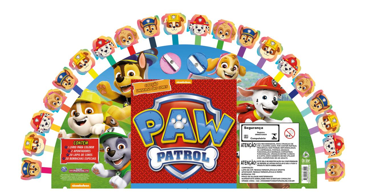 A "Coleção Universo das Cores - Patrulha Canina" convida as crianças a se juntarem aos heróis caninos favoritos em aventuras coloridas, estimulando a criatividade e a diversão enquanto dão vida aos personagens da Patrulha Canina. Acompanha 1 livro para colorir com 48 páginas, 2 apontadores, 20 lápis de cores e 20 borrachas especiais.