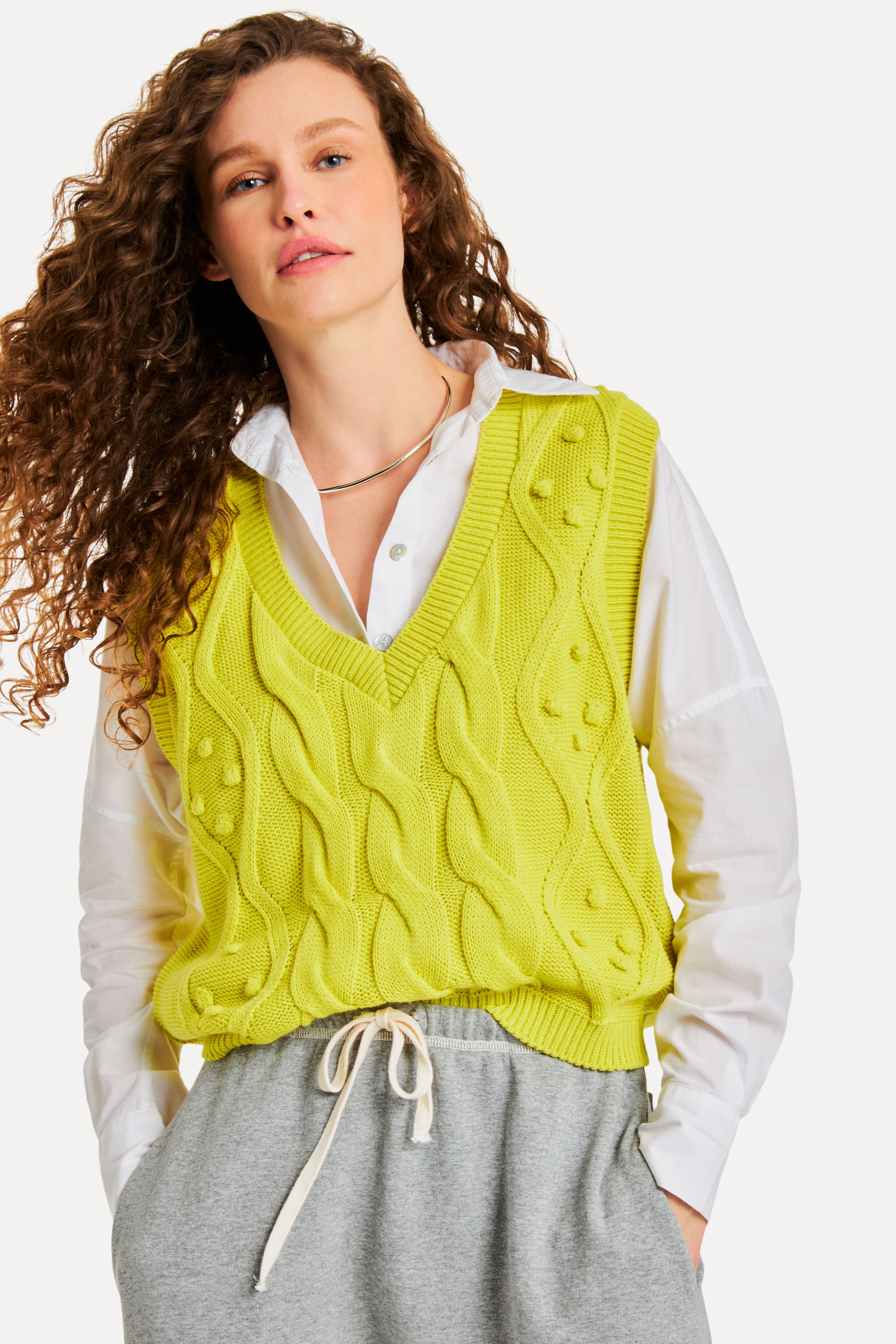O Colete Tricot Tranças é perfeito para dar um toque final no look. Pode ser usado como sobreposição de camisetas, tops e até vestidos. Colete Tricot Reversa produzido eticamente no Brasil. Comprando esta peça, você viabiliza cinco pratos de comida através do nosso programa 1P5P. A modelo mede 1,74 m e 83 cm de busto.