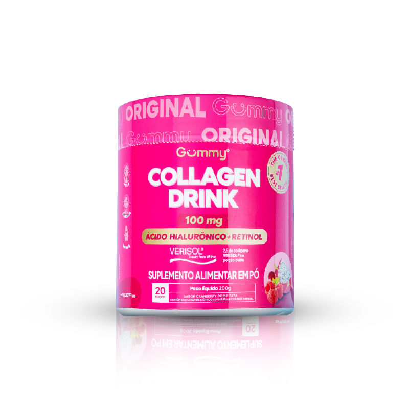 <p><span>O <strong>Collagen Drink da Gummy</strong> é um suplemento alimentar elaborado com colágeno Verisol®, ácido hialurônico, MSM e um blend de 13 vitaminas e minerais. Trazendo uma fórmula única e com a combinação deliciosa do sabor cranberry com pitaya.</span></p> <h2><b>Sugestão de consumo:</b></h2> <p><span>Dilua dois dosadores (10g) em 200ml de água ou conforme orientação do médico ou nutricionista.</span></p> <h2><b>Motivos para escolher o produto:</b></h2> <ul> <li aria-level="1"><span>Sem glúten e sem lactose;</span></li> <li aria-level="1"><span>Apenas 32 kcal por dose;</span></li> <li aria-level="1"><span>Elaborado com colágeno Verisol®;</span></li> <li aria-level="1"><span>Contém vitaminas do complexo B;</span></li> <li aria-level="1"><span>Feito com selênio, cromo e cobre;</span></li> <li aria-level="1"><span>100mg de ácido hialurônico;</span></li> <li aria-level="1"><span>Rende até 20 doses.</span></li> </ul> <h2><b>A Marca:</b></h2> <p><span>A Gummy Hair, marca pioneira no mercado de suplementação, introduziu a primeira vitamina em formato de coração, rapidamente ganhando popularidade entre os consumidores. Este sucesso foi impulsionado por uma estratégia de marketing digital e de influência inovadora. Atualmente, a Gummy possui uma vasta comunidade de seguidores nas redes sociais e uma ampla base de fãs, estando presente em milhares de pontos de venda físicos em todo o país.</span></p>