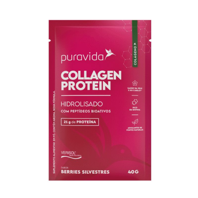 <h2 style="text-align: justify;"><strong>Collagen Protein Berries 40g Puravida </strong></h2> <h2 style="text-align: justify;"> </h2> <h2 style="text-align: justify;">O <strong>Collagen protein</strong> sabor <strong>berries</strong> <strong>Pura Vida</strong>, é um blend de ingredientes naturais como o colágeno hidrolisado e o colágeno Verisol®, que são uma fonte de proteína de ótima biodisponibilidade.</h2> <h2 style="text-align: justify;"><strong>Sobre os ingredientes: </strong></h2> <h2 style="text-align: justify;"><strong>Peptídeos de colágeno Verisol</strong>®: de acordo com estudos, é o tipo de colágeno direcionado para contribuir com a saúde da pele, cabelos e unhas.</h2> <h2 style="text-align: justify;"><strong>Colágeno hidrolisado:</strong> oferta e proteína de fácil digestão, indicado para quem tem problemas digestivos com outras fontes de proteínas, como o whey protein.</h2> <h2 style="text-align: justify;"><strong>Sugestão de consumo: </strong></h2> <h2 style="text-align: justify;">Adicione um scoop em 200ml de água ou bebidas e consuma. Pode ser utilizado entre as refeições e após atividades físicas. Pode ser consumido junto das principais refeições, como café, almoço ou jantar como um complemento da proteína.</h2> <h2 style="text-align: justify;"><strong>Motivos para escolher o produto: </strong></h2> <ul style="text-align: justify;"> <li> <h2>Pode ser consumido após o exercício;</h2> </li> <li> <h2>Pode ser adicionado nas principais refeições como complemento de proteína;</h2> </li> <li> <h2>Contém 21g de proteína na porção;</h2> </li> <li> <h2>Elaborado com adoçantes naturais eritritol e taumatina;</h2> </li> <li> <h2>Sem glúten e lácteos;</h2> </li> <li> <h2>Sem conservantes, corantes e aromatizantes artificiais;</h2> </li> <li> <h2>Sem adição de açúcar.</h2> </li> </ul> <h2 style="text-align: justify;"><strong>A Marca</strong></h2> <h2 style="text-align: justify;">Puravida é uma empresa que nasceu com o propósito de facilitar a prática de um estilo de vida orgânico. Acreditam que a qualidade daquilo que escolhemos comer, pode afetar o funcionamento do nosso corpo, funcionamento dos órgãos, humor, foco e mente. Através de suas vitaminas, suplementos, cosméticos, granolas, colágenos e outros produtos elaborados com ingredientes de altíssima qualidade podem contribuir com a sinergia do corpo.</h2> <h2 style="text-align: justify;"> </h2> <h2 style="text-align: justify;"> </h2>