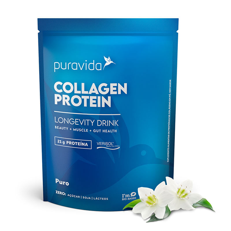 <h2 style="text-align: justify;"><strong>Collagen Protein Neutro 450g Puravida </strong></h2> <h2 style="text-align: justify;">&nbsp;</h2> <h2 style="text-align: justify;">O <strong>Collagen protein</strong> sabor <strong>neutro</strong> <strong>Pura Vida</strong>, &eacute; um blend de ingredientes naturais como o col&aacute;geno hidrolisado e o col&aacute;geno Verisol&reg;,&nbsp;que s&atilde;o uma fonte de prote&iacute;na de &oacute;tima biodisponibilidade.</h2> <h2 style="text-align: justify;"><strong>Sobre os ingredientes: </strong></h2> <h2 style="text-align: justify;"><strong>Pept&iacute;deos de col&aacute;geno Verisol</strong>&reg;: de acordo com estudos, &eacute; o tipo de col&aacute;geno direcionado para contribuir com a sa&uacute;de da pele, cabelos e unhas.</h2> <h2 style="text-align: justify;"><strong>Col&aacute;geno hidrolisado:</strong> oferta e prote&iacute;na de f&aacute;cil digest&atilde;o, indicado para quem tem problemas digestivos com outras fontes de prote&iacute;nas, como o whey protein.</h2> <h2 style="text-align: justify;"><strong>Sugest&atilde;o de consumo: </strong></h2> <h2 style="text-align: justify;">Adicione um scoop em 200ml de &aacute;gua ou bebidas e consuma. Pode ser utilizado entre as refei&ccedil;&otilde;es e ap&oacute;s atividades f&iacute;sicas. Pode ser consumido junto das principais refei&ccedil;&otilde;es, como caf&eacute;, almo&ccedil;o ou jantar como um complemento da prote&iacute;na.</h2> <h2 style="text-align: justify;"><strong>Motivos para escolher o produto: </strong></h2> <ul style="text-align: justify;"> <li> <h2>Pode ser consumido ap&oacute;s o exerc&iacute;cio;</h2> </li> <li> <h2>Pode ser adicionado nas principais refei&ccedil;&otilde;es como complemento de prote&iacute;na;</h2> </li> <li> <h2>Cont&eacute;m 21g de prote&iacute;na na por&ccedil;&atilde;o;</h2> </li> <li> <h2>Sem gl&uacute;ten e l&aacute;cteos;</h2> </li> <li> <h2>Sem conservantes, corantes e aromatizantes artificiais;</h2> </li> <li> <h2>Sem adi&ccedil;&atilde;o de a&ccedil;&uacute;car e ado&ccedil;antes.</h2> </li> </ul> <h2 style="text-align: justify;"><strong>A Marca</strong></h2> <h2 style="text-align: justify;">Puravida &eacute; uma empresa que nasceu com o prop&oacute;sito de facilitar a pr&aacute;tica de um estilo de vida org&acirc;nico. Acreditam que a qualidade daquilo que escolhemos comer, pode afetar o funcionamento do nosso corpo, funcionamento dos &oacute;rg&atilde;os, humor, foco e mente. Atrav&eacute;s de suas vitaminas, suplementos, cosm&eacute;ticos, granolas, col&aacute;genos e outros produtos elaborados com ingredientes de alt&iacute;ssima qualidade podem contribuir com a sinergia do corpo.</h2> <h2 style="text-align: justify;">&nbsp;</h2> <h2 style="text-align: justify;">&nbsp;</h2>