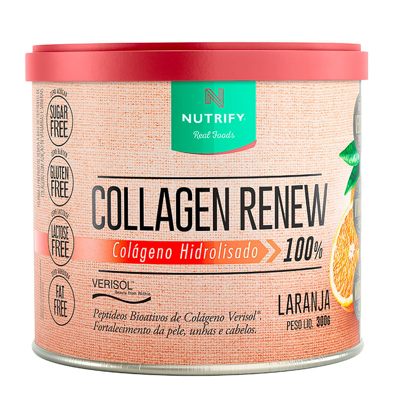 <p>O <strong>Collagen Renew Laranja Nutrify 300g</strong>, é um suplemento à base de colágeno hidrolisado e Verisol®, uma fórmula patenteada com peptídeos bioativos de colágeno, que apresenta boa absorção pelo organismo. Contém ainda vitaminas e minerais, como a vitamina C. É adoçado com stevia e livre de corantes artificiais.</p> Sugestão de consumo: <p>Recomenda-se o consumo de 10 g de Collagen Renew da Nutrify, administrados em dose única ou dividido em 2 ou mais doses diárias. Pode ser adicionado à água e também a sucos, vitaminas ou frutas picadas. Seu consumo deve estar associado a uma alimentação equilibrada e hábitos de vida saudáveis.</p> Motivos para escolher o produto: <ul> <li> <p>Sem adição de açúcar</p> </li> <li> <p>Isento de adoçantes artificiais</p> </li> <li> <p>Sem lactose</p> </li> <li> <p>Sem glúten</p> </li> <li> <p>Apenas 36kcal por porção</p> </li> <li> <p>Com vitaminas e minerais, como vitamina C e zinco</p> </li> <li> <p>Com colágeno Verisol®</p> </li> </ul> Sobre a marca: <p>A <strong>Nutrify</strong>, busca oferecer bem-estar através de produtos de qualidade, saudáveis, saborosos, responsáveis e com embasamento científico. Possui um foco específico em alimentos e suplementos para praticantes de atividade física, além de apoiar iniciativas relacionadas à responsabilidade social e sustentabilidade.</p>