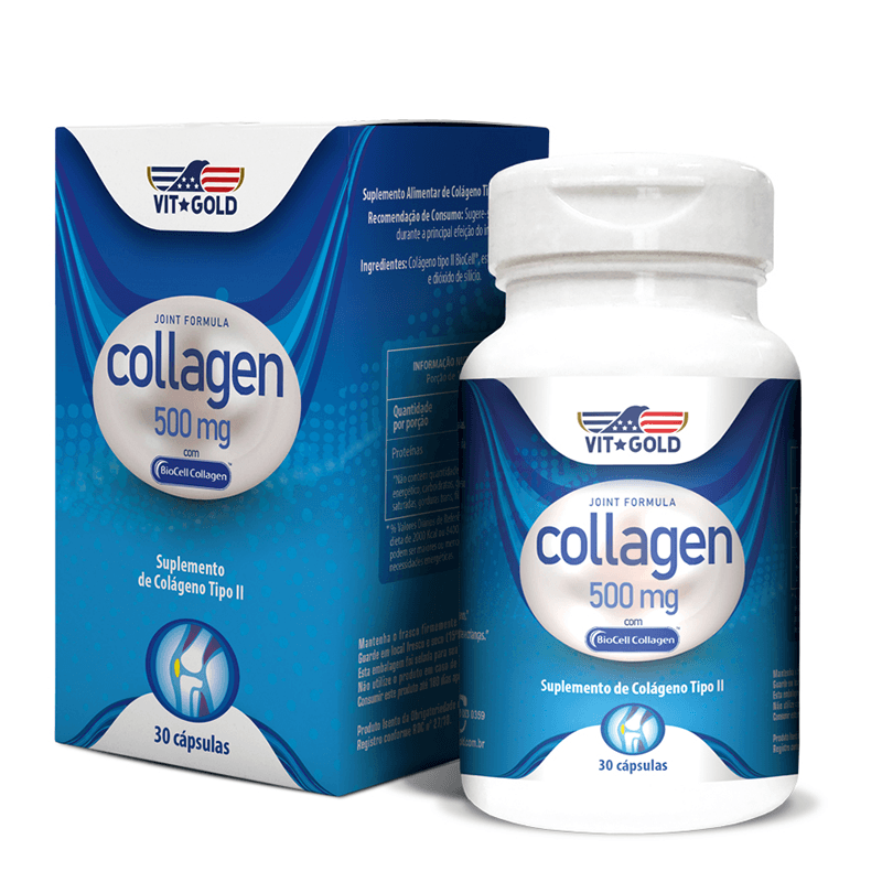 <p>O <strong>Collagen Tipo II Vitgold 500mg com 30 cápsulas</strong>, com a tecnologia BioCell® é melhor absorvido e auxilia na saúde das articulações, cartilagens e tendões. Fabricado nos Estados Unidos.</p> Sobre os ingredientes: <p>Magnésio tipo II BioCell®, estearato de magnésio e dióxido de silício.</p> Sugestão de consumo: <p>Sugere-se 01 cápsula ao dia, durante a refeição principal.</p> Motivos para escolher o produto: <ul> <li> <p>Auxilia no fortalecimento de cartilagens e articulações</p> </li> <li> <p>O Colágeno é uma proteína indispensável para manter as células dos tecidos unidas</p> </li> <li> <p>Minimiza dores articulares</p> </li> </ul> Sobre a marca: <p>A <strong>VitGold</strong>‚ é uma empresa de suplementos vitamínicos e minerais dos Estados Unidos, com atividades no Brasil desde 1994. Seus produtos são produzidos em laboratórios credenciados e validados por órgãos como a FDA nos Estados Unidos e a ANVISA no Brasil, garantindo a qualidade dos suplementos.</p>