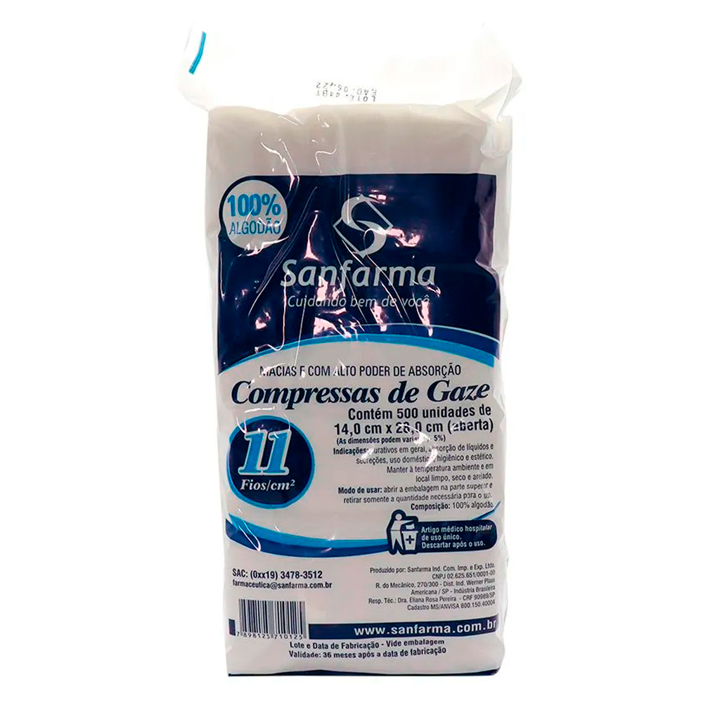 COMPRESSA DE GAZE 11F C 500 SANFARMA