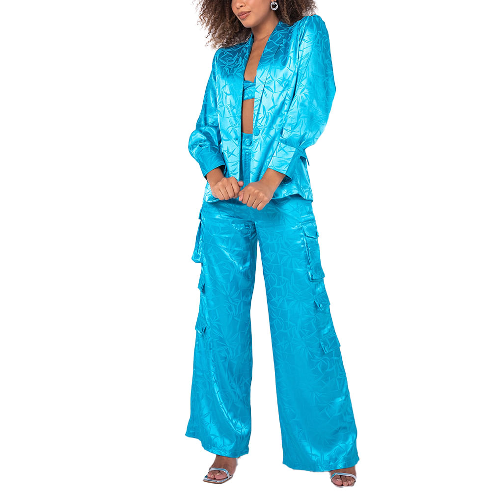 Conjunto confeccionado com cetim estampado com temática de flores; Modelagem justa; Estampa corrida com temática de flores; Aposte na peça estampada para trazer ainda mais informação de moda aos seus looks;<br><br><br>.<br><br><br><br>Produto : Conjunto Cetim Calça Azul <br>Categoria:Conjunto<br>Cor: Azul <br>Contém 01 Top + 01 Calça + 01 Blazer<br>Tecido: Cetim estampado<br>Composição : 97% Poliester /3% elastano<br>Peso :300g<br>Gênero: Feminino<br>Marca: Vértice<br><br>.<br><br>Medidas<br>P - Busto até 90 cm l Cintura até 71 cm l Quadril até 99 Cm.<br>M - Busto até 96 cm l Cintura até 77 cm l Quadril até 102 cm.<br>G - Busto até 102 cm l Cintura 83 cm l Quadril 111 cm.<br>GG - Busto 108 cm l Cintura até 89 cm l Quadril até 117 cm.<br>EGG - Busto até 114 cm l Cintura até 95 cm l Quadril até 123 cm.