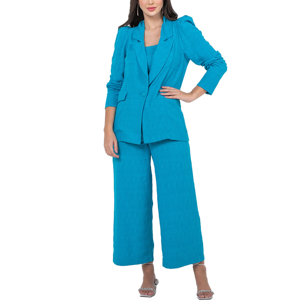 Conjunto feminino confeccionado em linho, um tecido natural com ótima respirabilidade; O conjunto em linho é a peça ideal para um visual fashion e que as antenadas em moda adoram, principalmente durante o dia; Invista!<br><br>. <br><br>Produto : Conjunto Linho Calça Azul <br>Categoria:Conjunto<br>Cor: Azul <br>Contém 01 Top + 01 Calça+ Blazer <br>Tecido: Linho <br>Composição : 11% viscose /43% poliester / 31% algodão/ 15% linho <br>Peso :300 g<br>Gênero: Feminino<br>Marca: Vértice<br>.<br><br><br><br>Medidas<br>P - Busto até 90 cm l Cintura até 71 cm l Quadril até 99 Cm.<br>M - Busto até 96 cm l Cintura até 77 cm l Quadril até 102 cm.<br>G - Busto até 102 cm l Cintura 83 cm l Quadril 111 cm.<br>GG - Busto 108 cm l Cintura até 89 cm l Quadril até 117 cm.<br>EGG - Busto até 114 cm l Cintura até 95 cm l Quadril até 123 cm.<br>